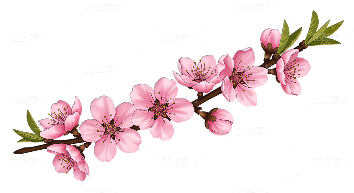 桃花枝条扁平卡通插画免扣png素材 (1).png
