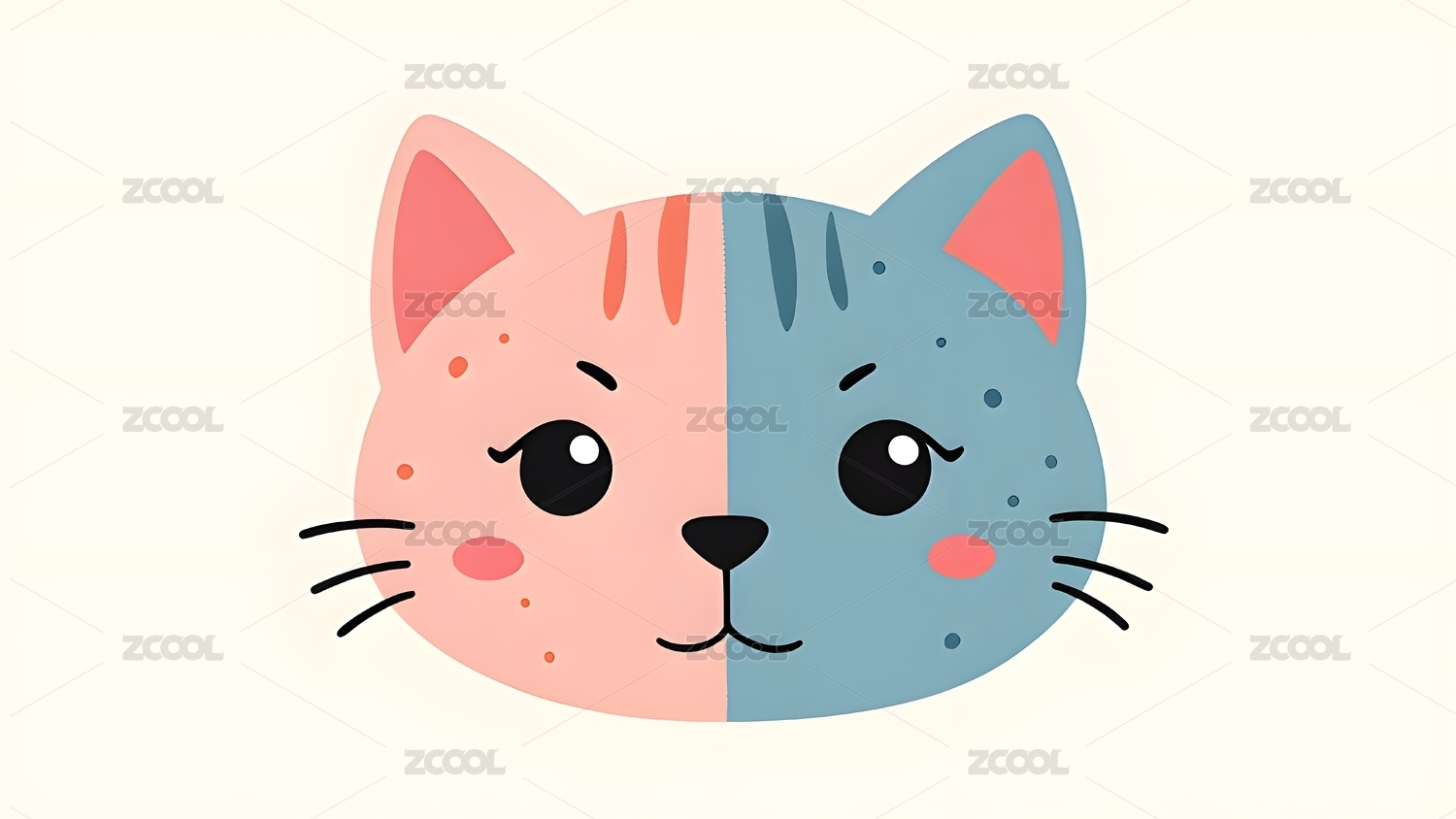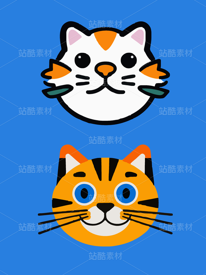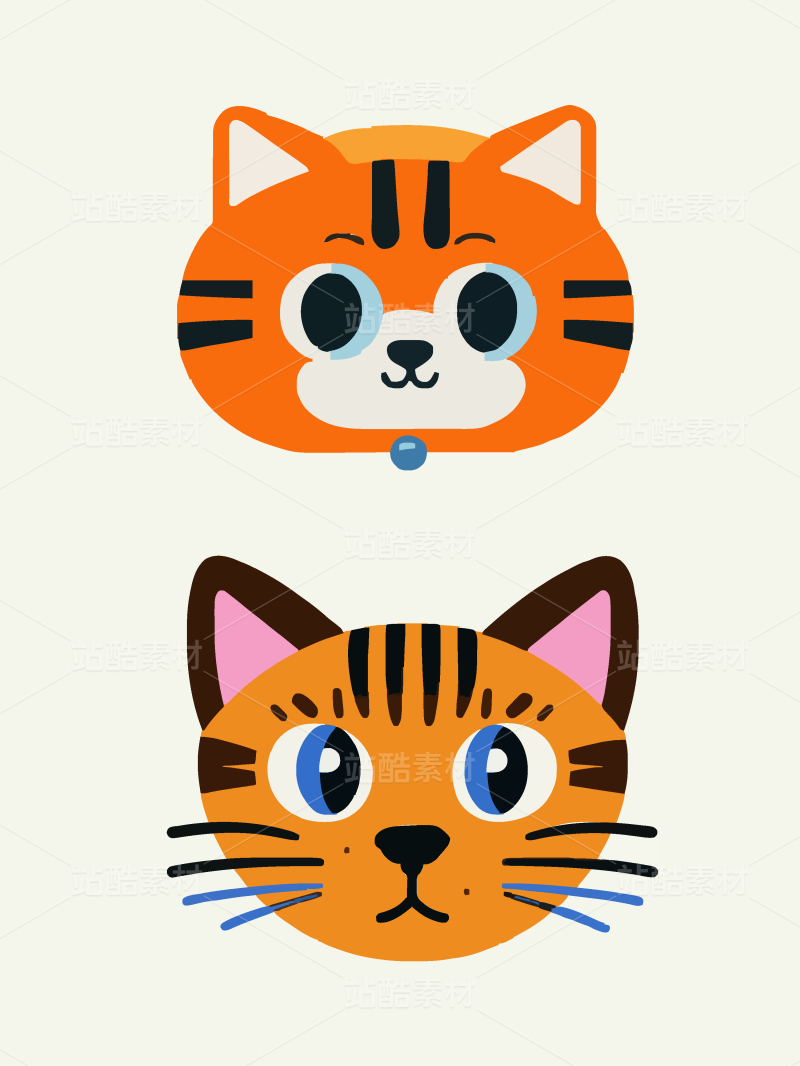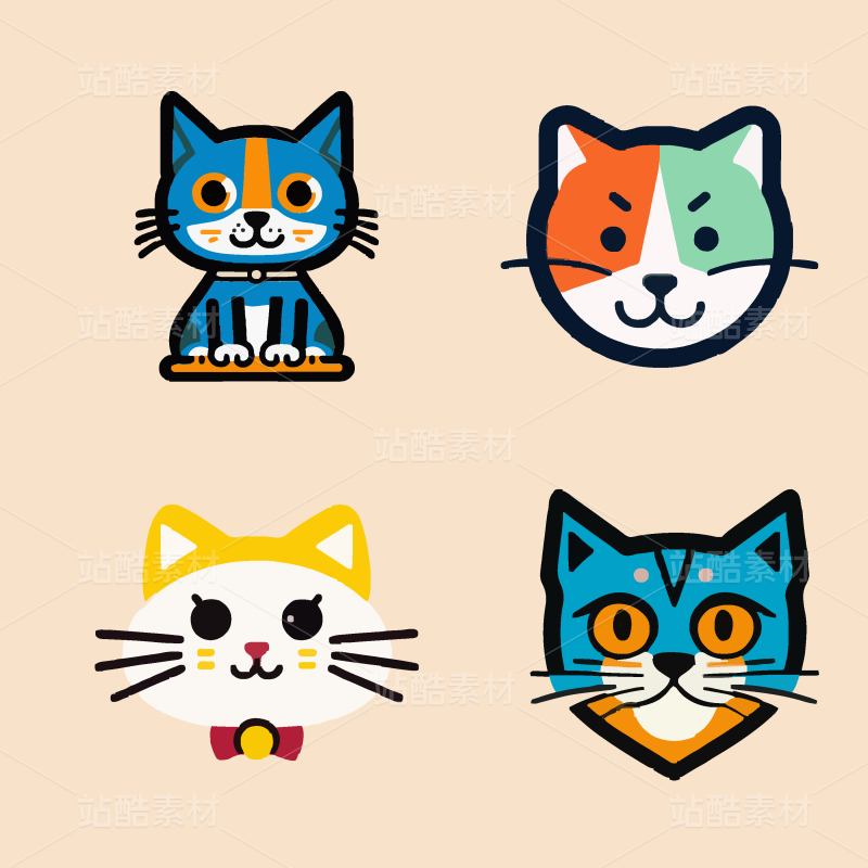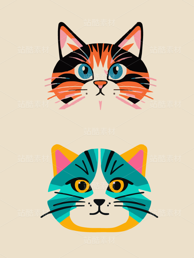 彩色蓝色橙色可爱猫猫猫头鹰宠物插画