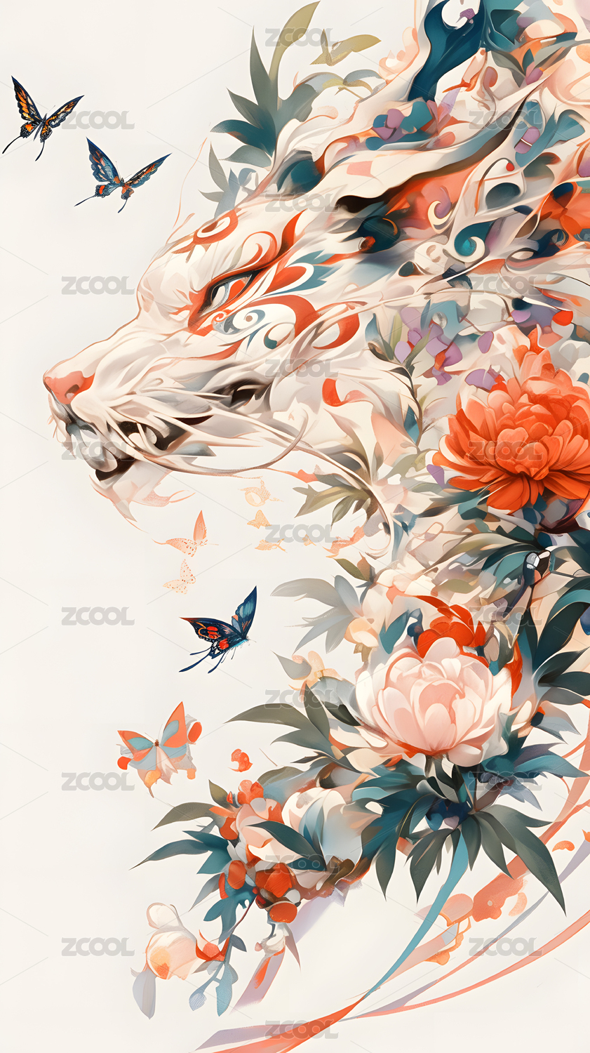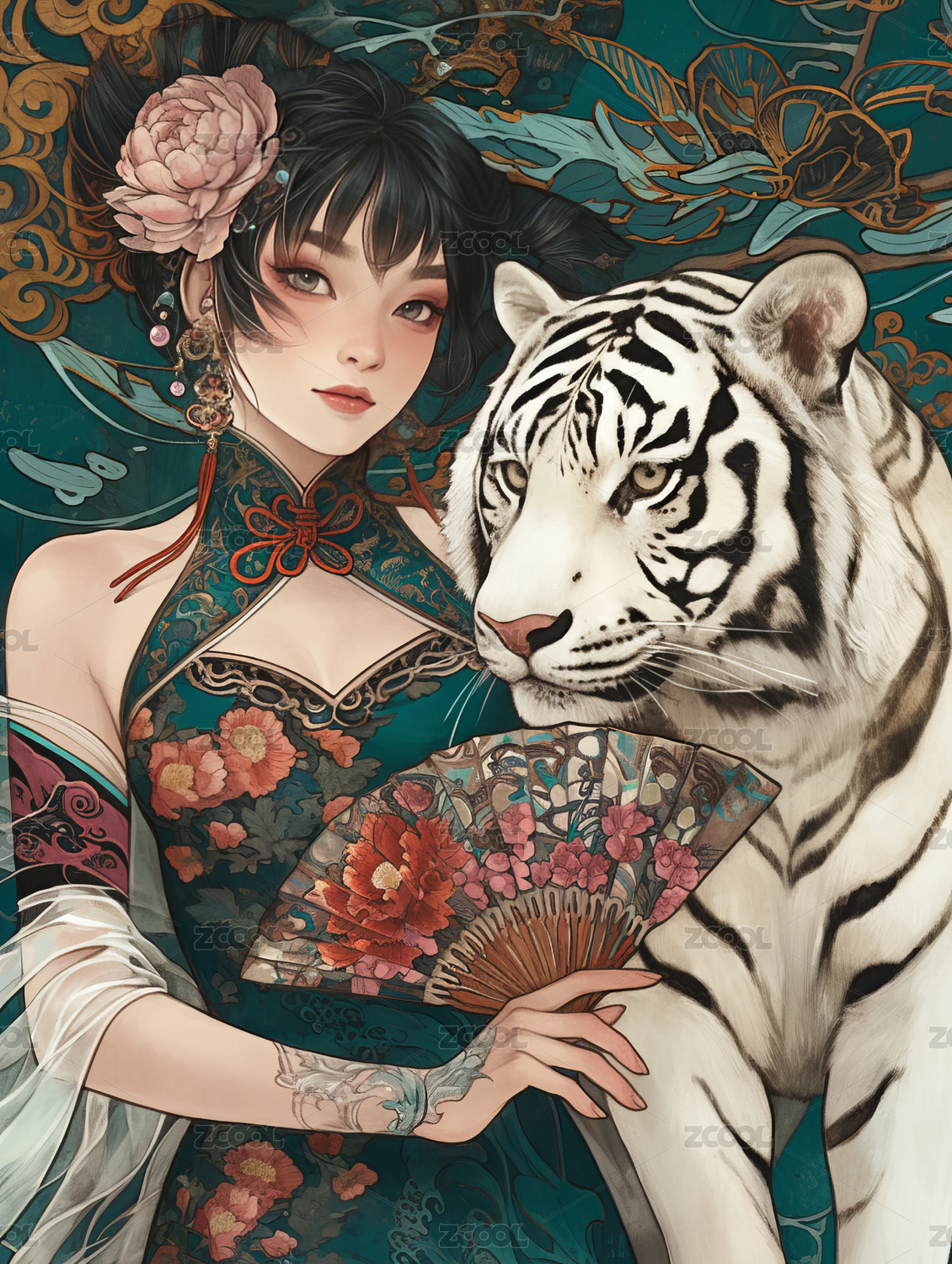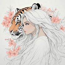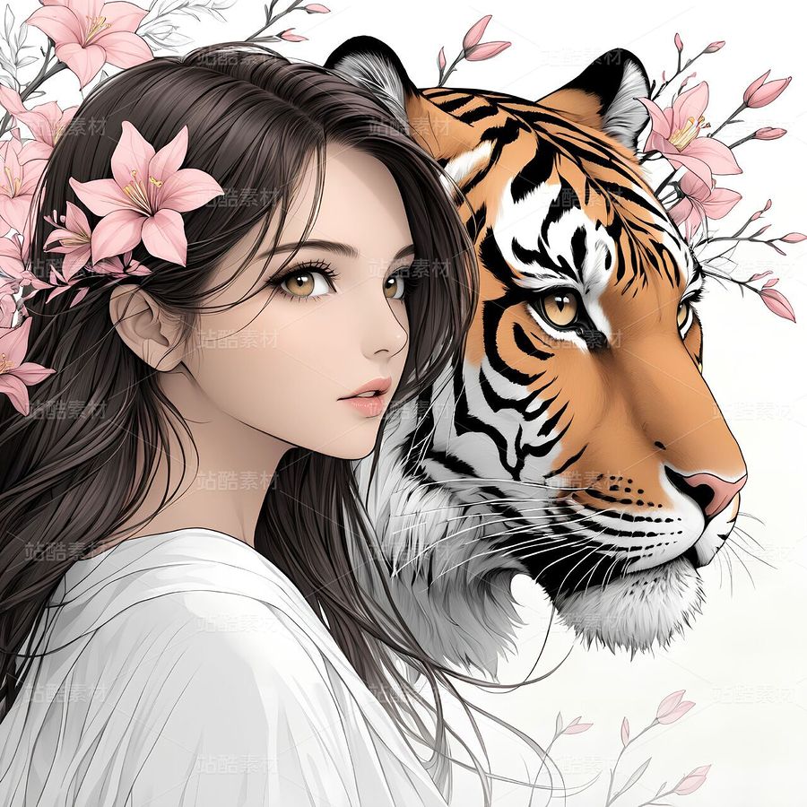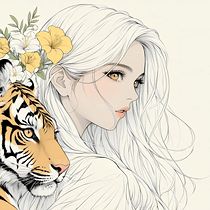 这是《美女与野兽》第一辑《少女与虎》,一共6幅作品,比例1:1,像素 4000 x 4000 。线描+淡彩,比较适合做成装饰画放置于书房或客厅。另有平台不能发布的版本《山鬼》,有意私聊。