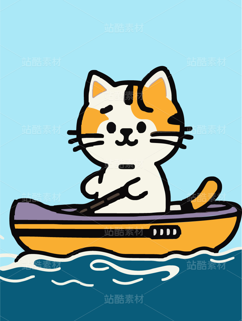 划船的小猫矢量画