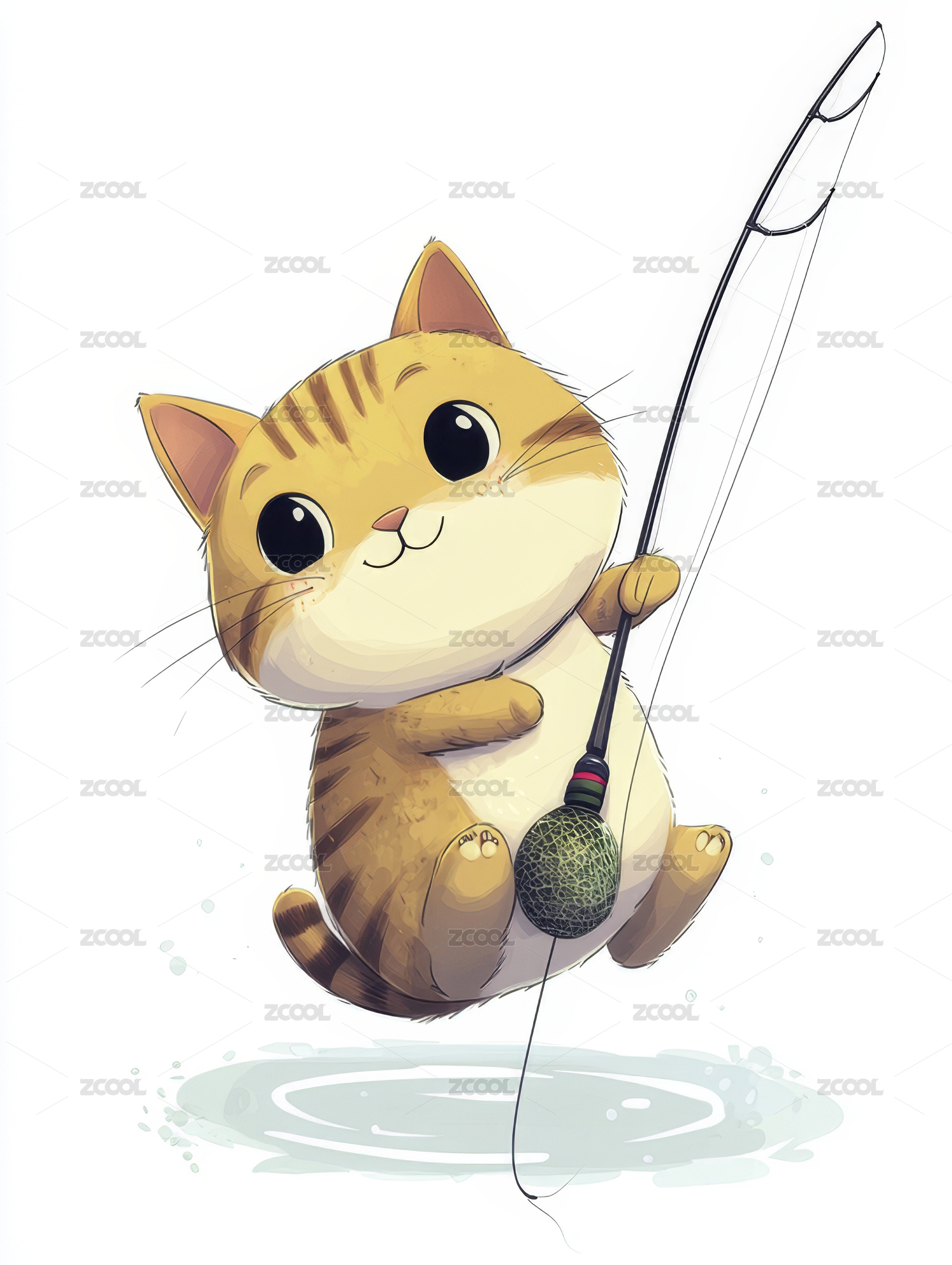 可爱猫咪钓鱼图