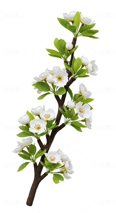 春天梨花盛开枝条扁平卡通插画免扣png素材
