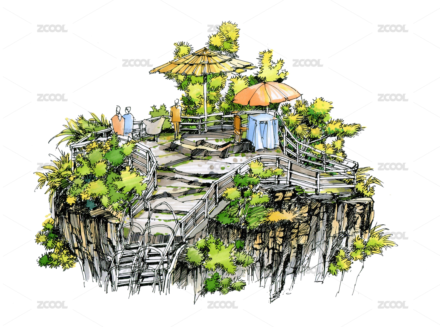 张家界武陵源手绘旅游写生