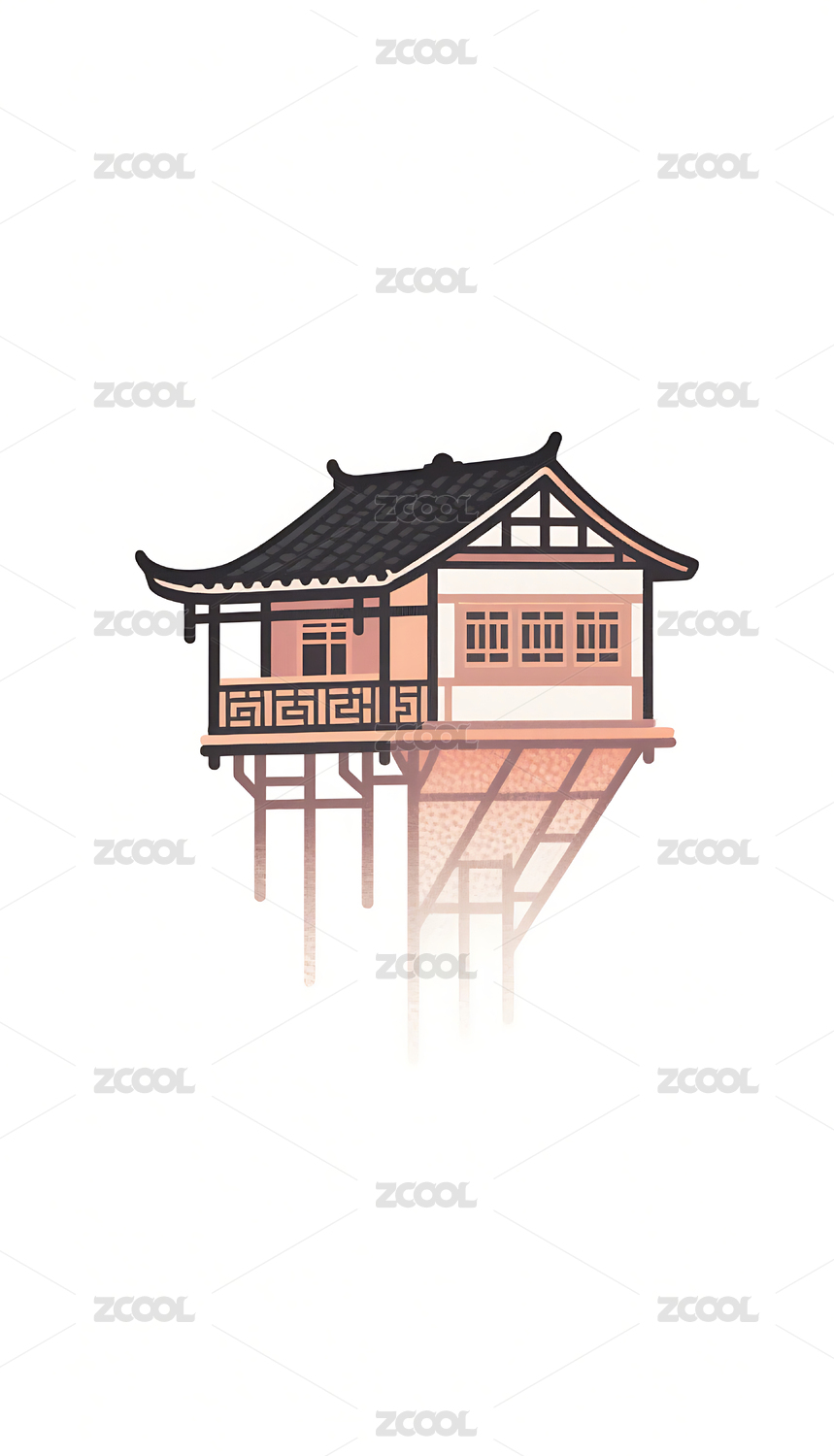 国潮风格中式传统古建筑插画素材