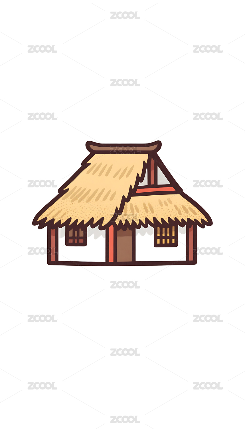国潮卡通风格古建筑茅草屋插画素材