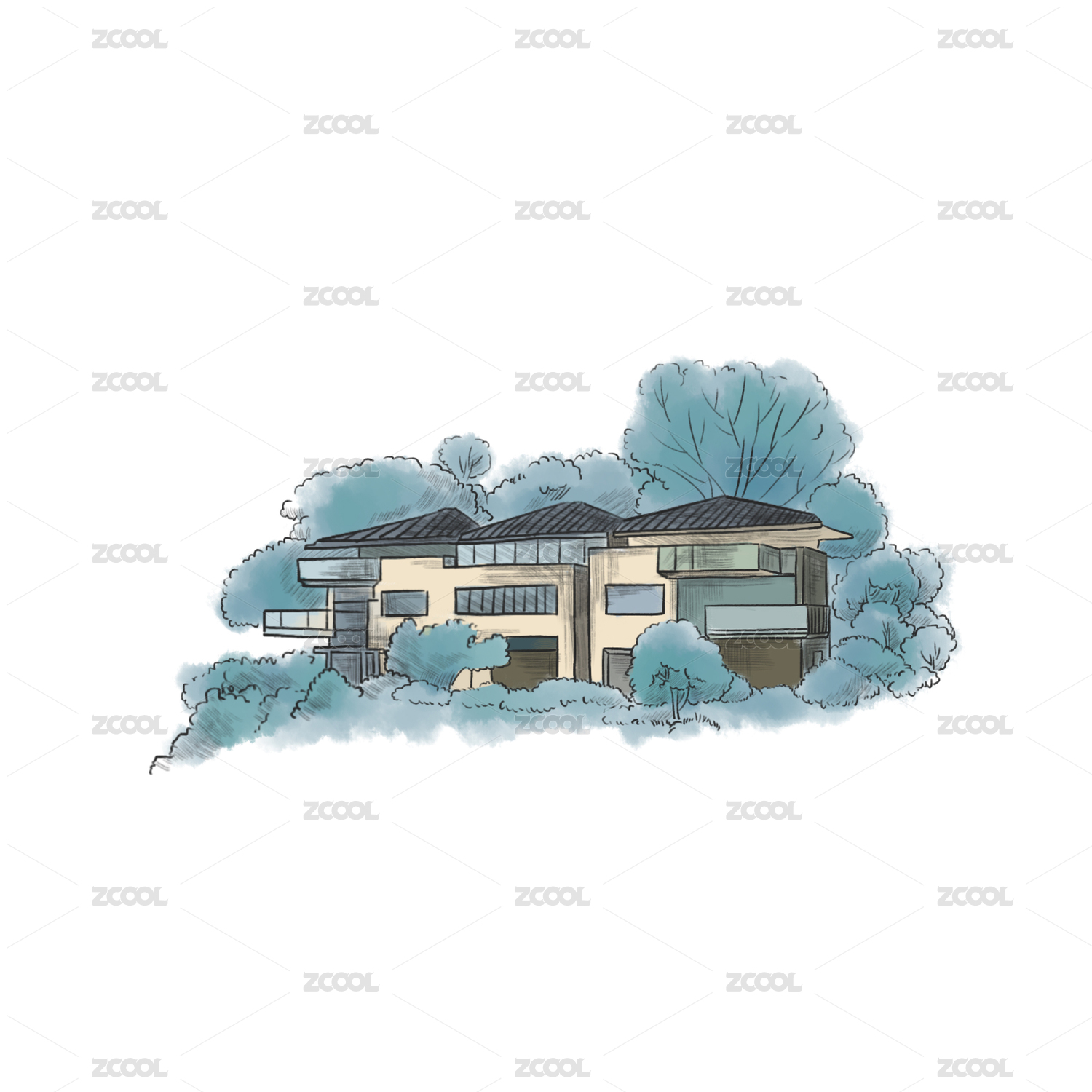 手绘景观建筑室内效果图