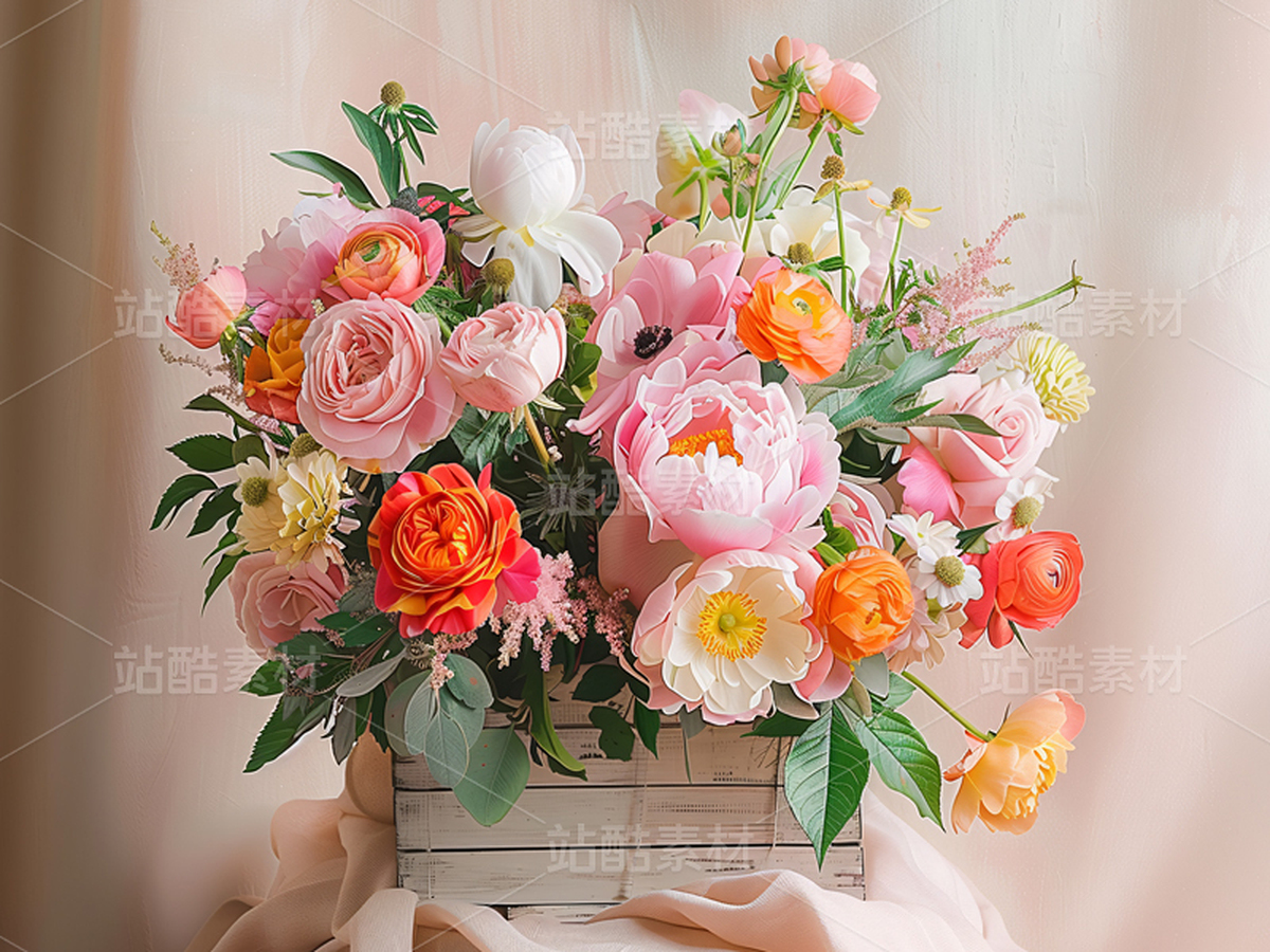 鲜花牡丹玫瑰静物花艺