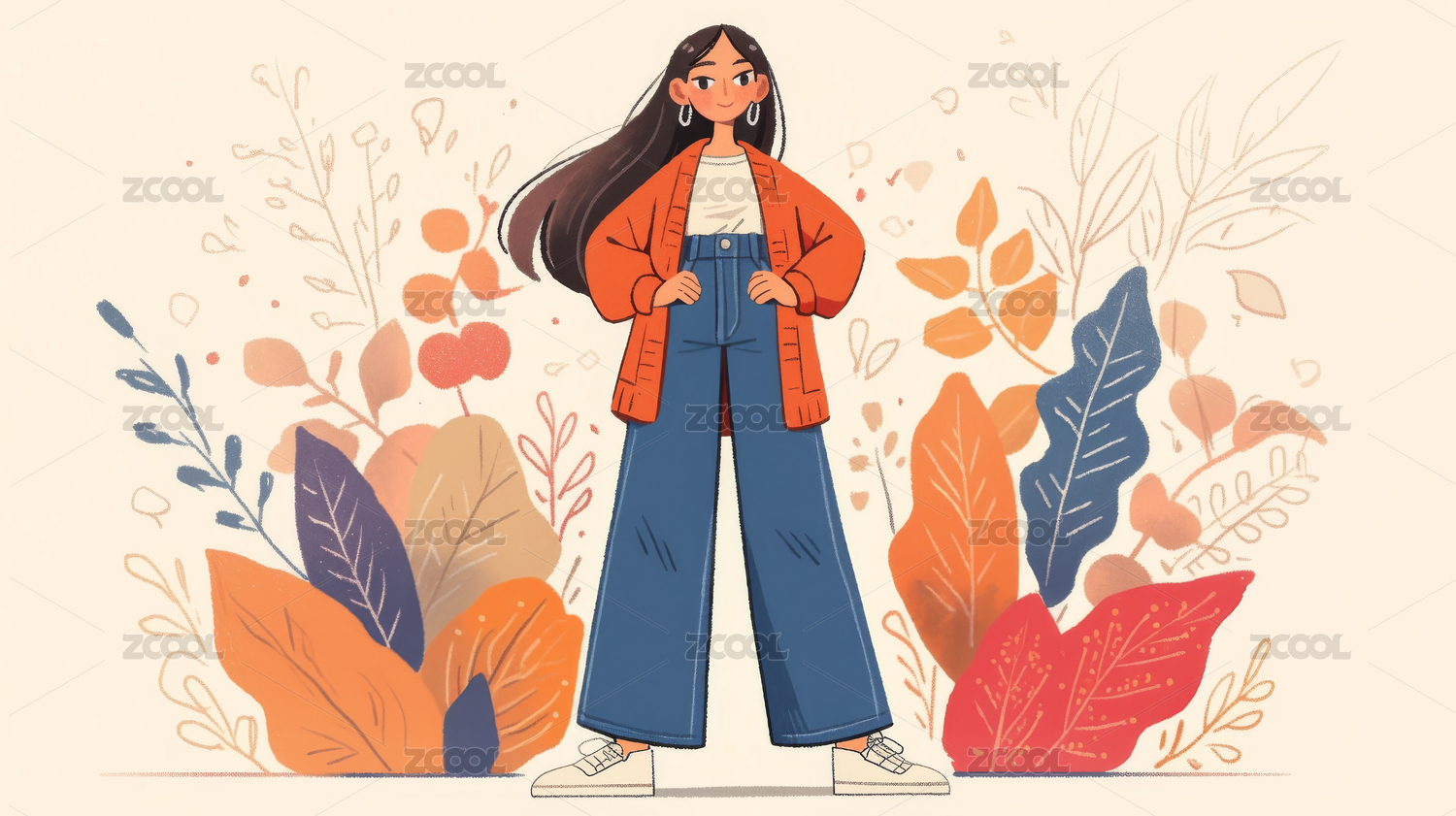 春日主题 春日时尚 穿长裤外套春季服装的女孩