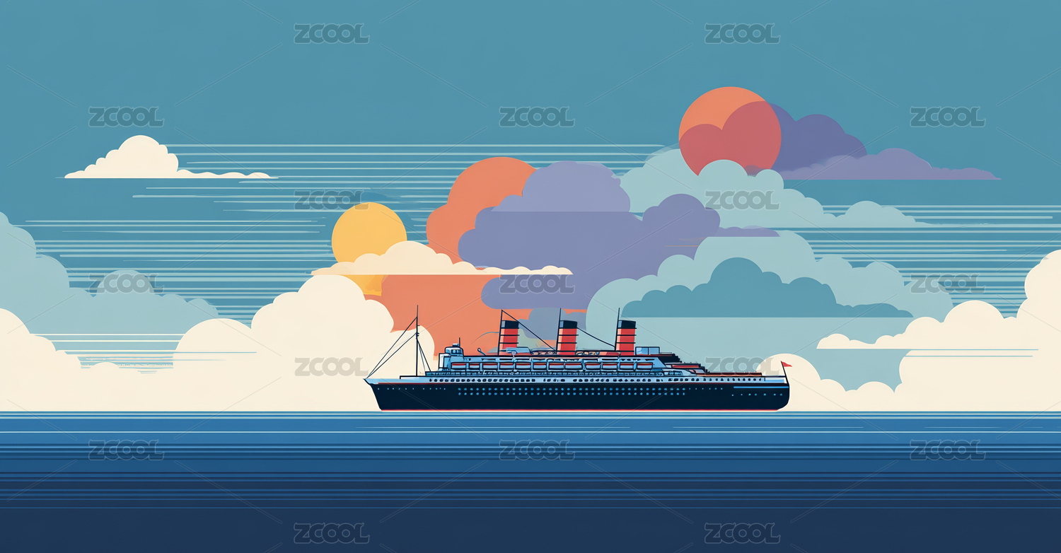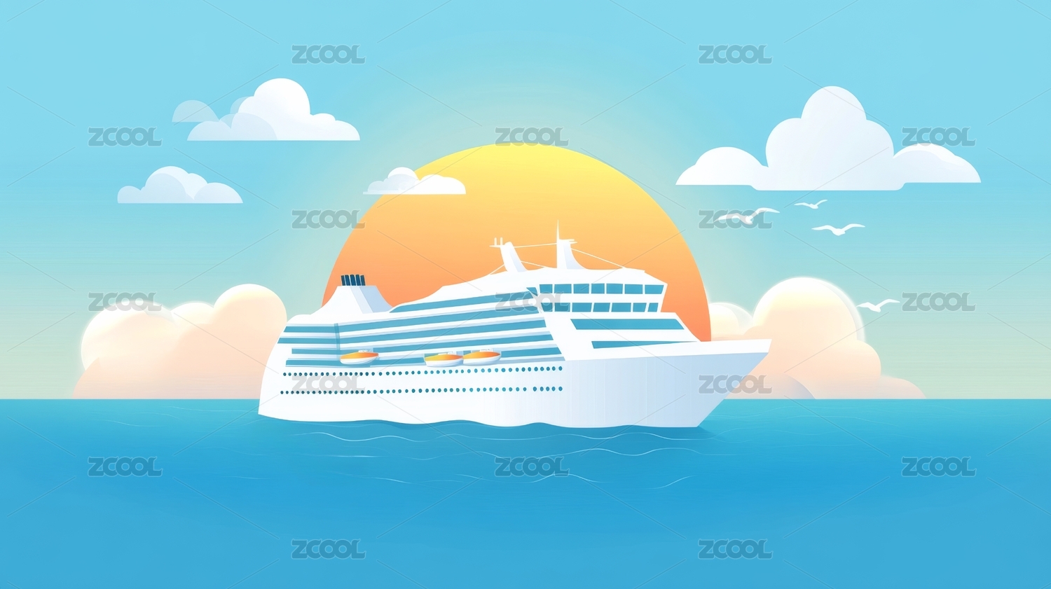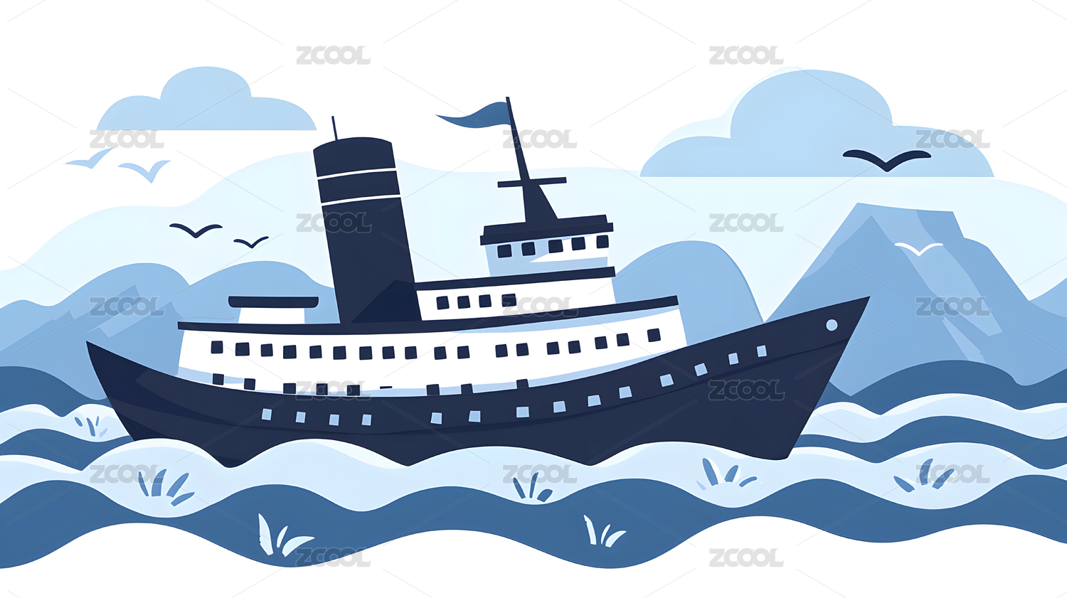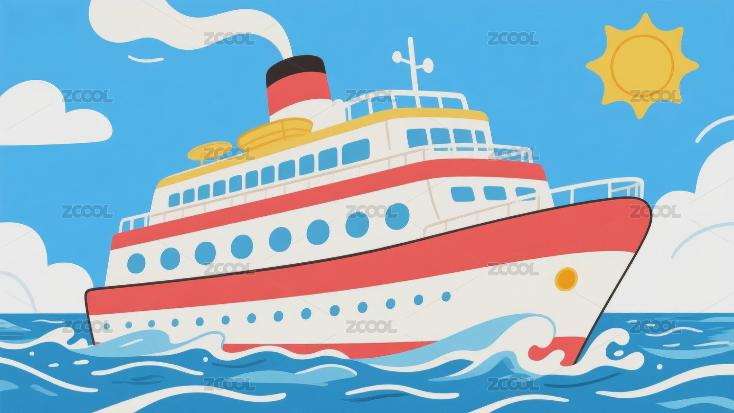 国庆假日出发旅游卡通豪华轮船交通运输插画