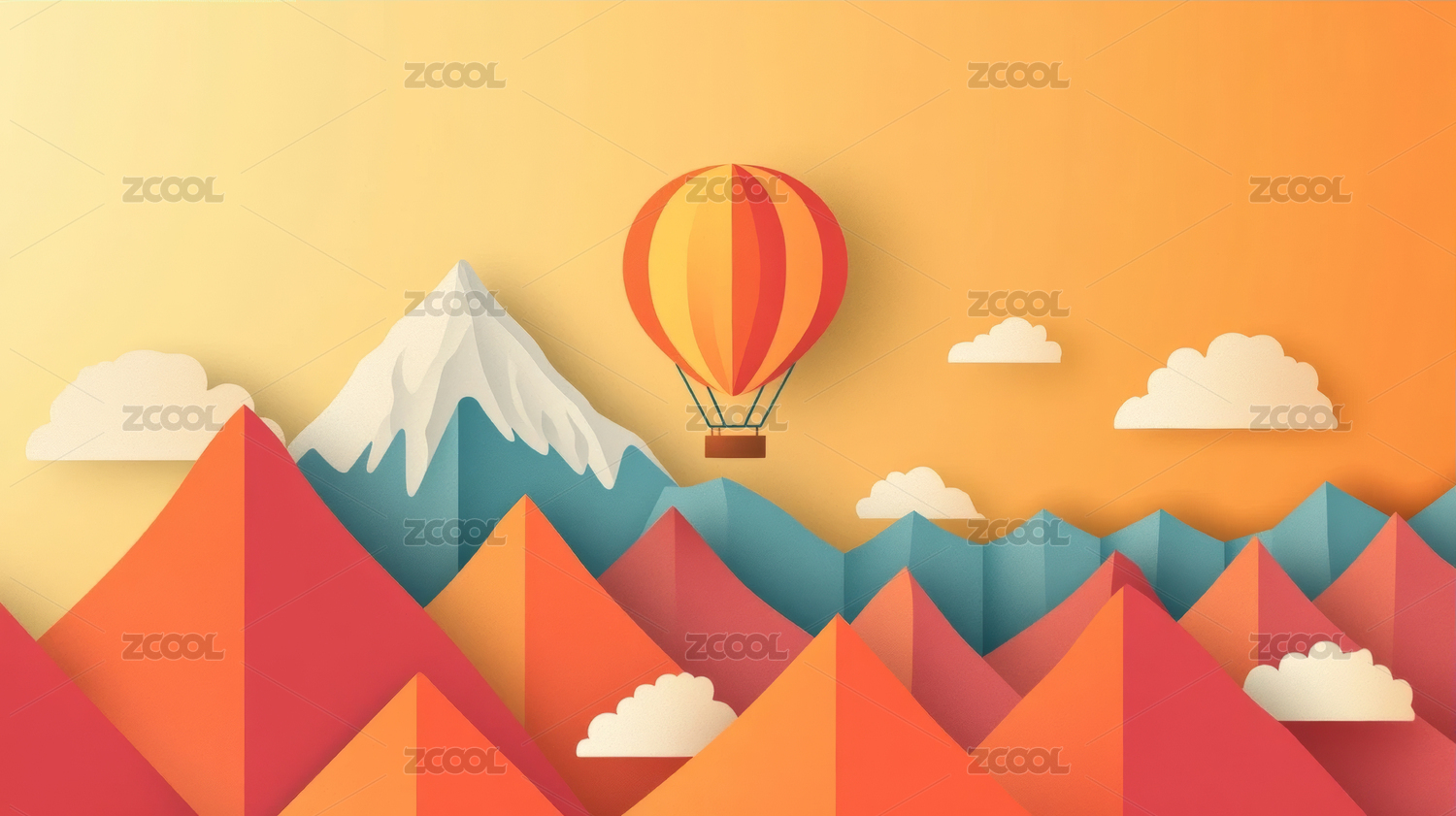 抽象矢量热气球在蓝天白云里漂户外旅游背景