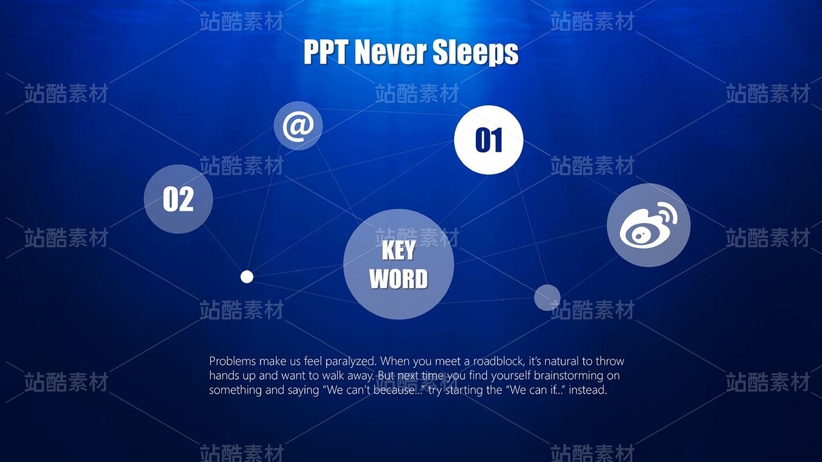 B36【模拟海洋气泡动画】ISO创意海蓝简约商务演示模板