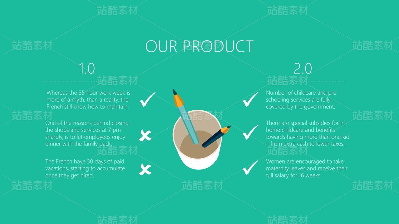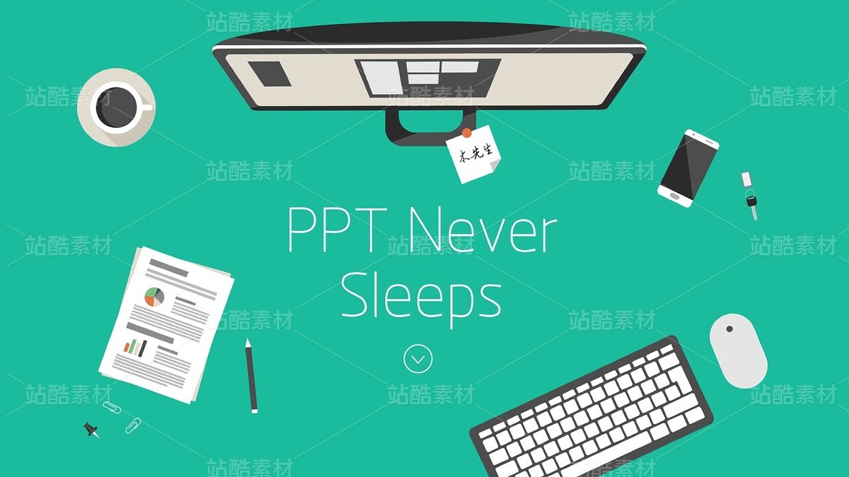 B33【扁平化-工作桌面空间】欧美简约小清新动态商务模板@木先生iPP