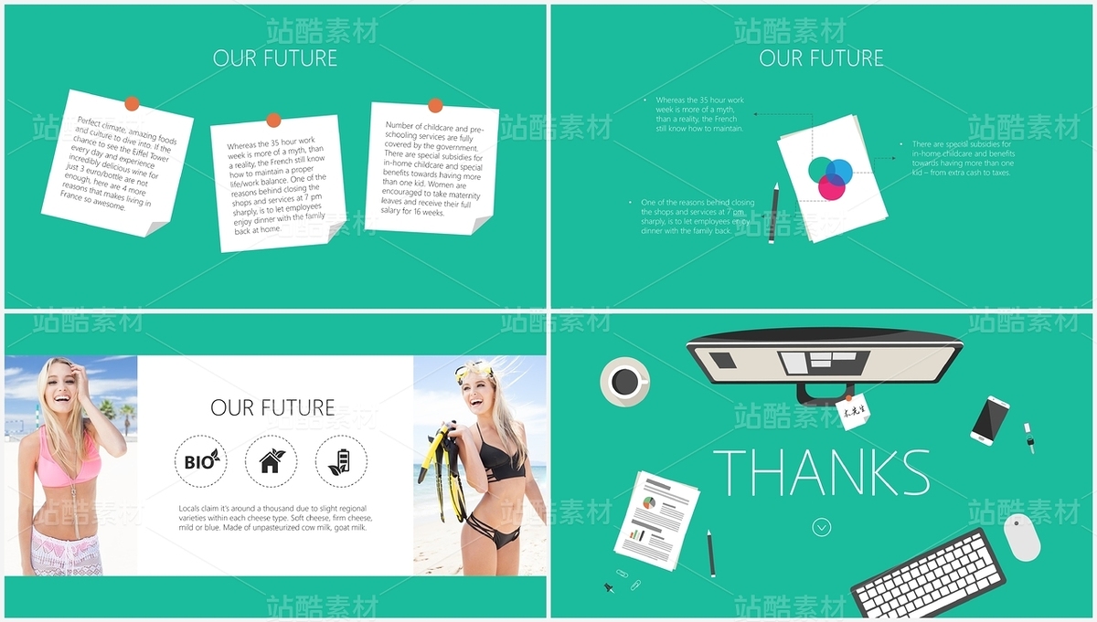 B33【扁平化-工作桌面空间】欧美简约小清新动态模板