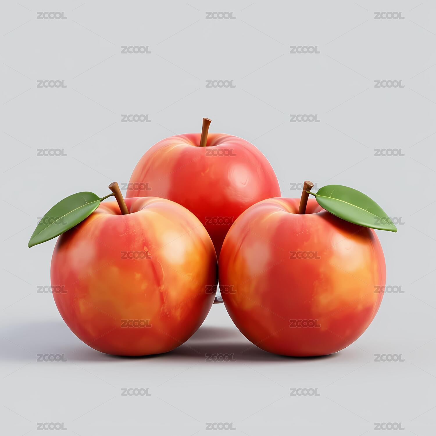 三个红色的苹果放在灰色背景上