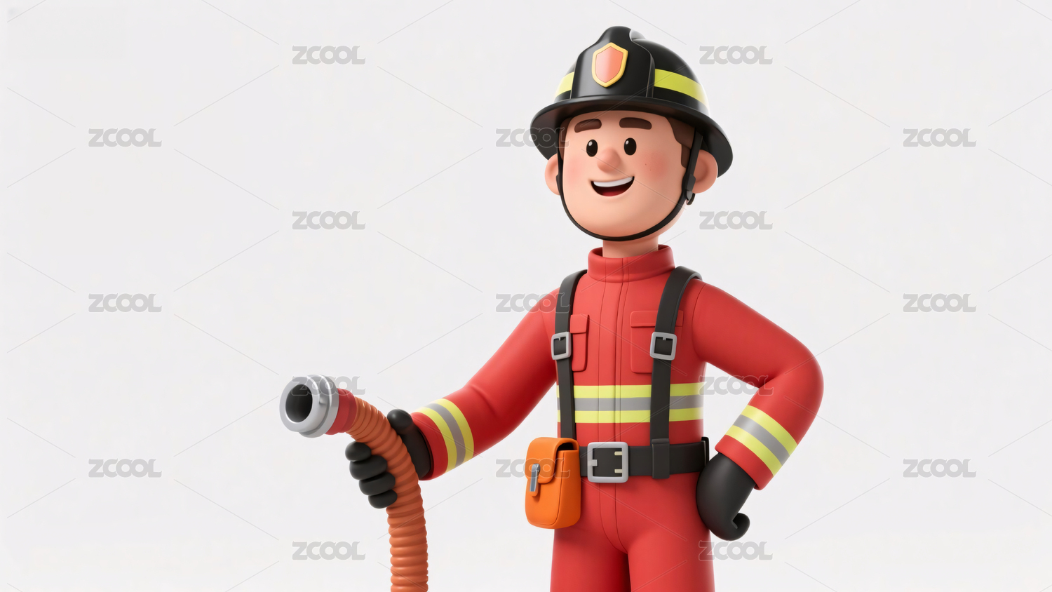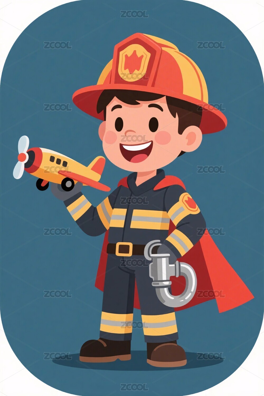 此素材为人物职业形象插画,卡通消防员,扁平风,矢量绘制,文件规格为宽800像素,高600像素,分辨率300DPI,颜色模式RGB,导出位图可根据需要在EPS矢量源文件中调整修改,素材可商用于与职业相关的设计中。
