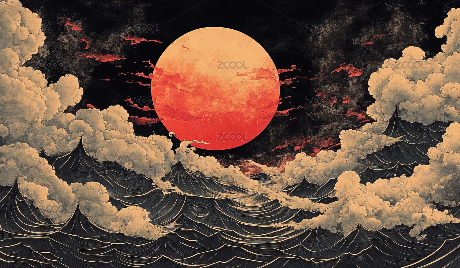 四、整幅画的创意也是根据山海经中的这段话所展开的。画面最终目的就是为了展现出犼作为四大古神其应有的气势以及它自身的能力,并将它与龙战斗的这场精彩场景再现于画中。让更多人能够明确的了解犼是什么样的,在人们脑海中留下犼的样子,而不是让它仅存在于传说中。