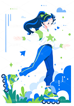夏天女孩跑步运动减肥插画户外锻炼健身海报
