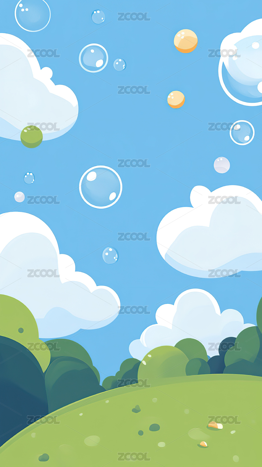 蓝绿色矢量促销可爱卡通儿童插画运营活动
