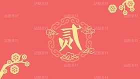中国传统新年福字设计,米黄色背景上红色祥云和花纹图案
