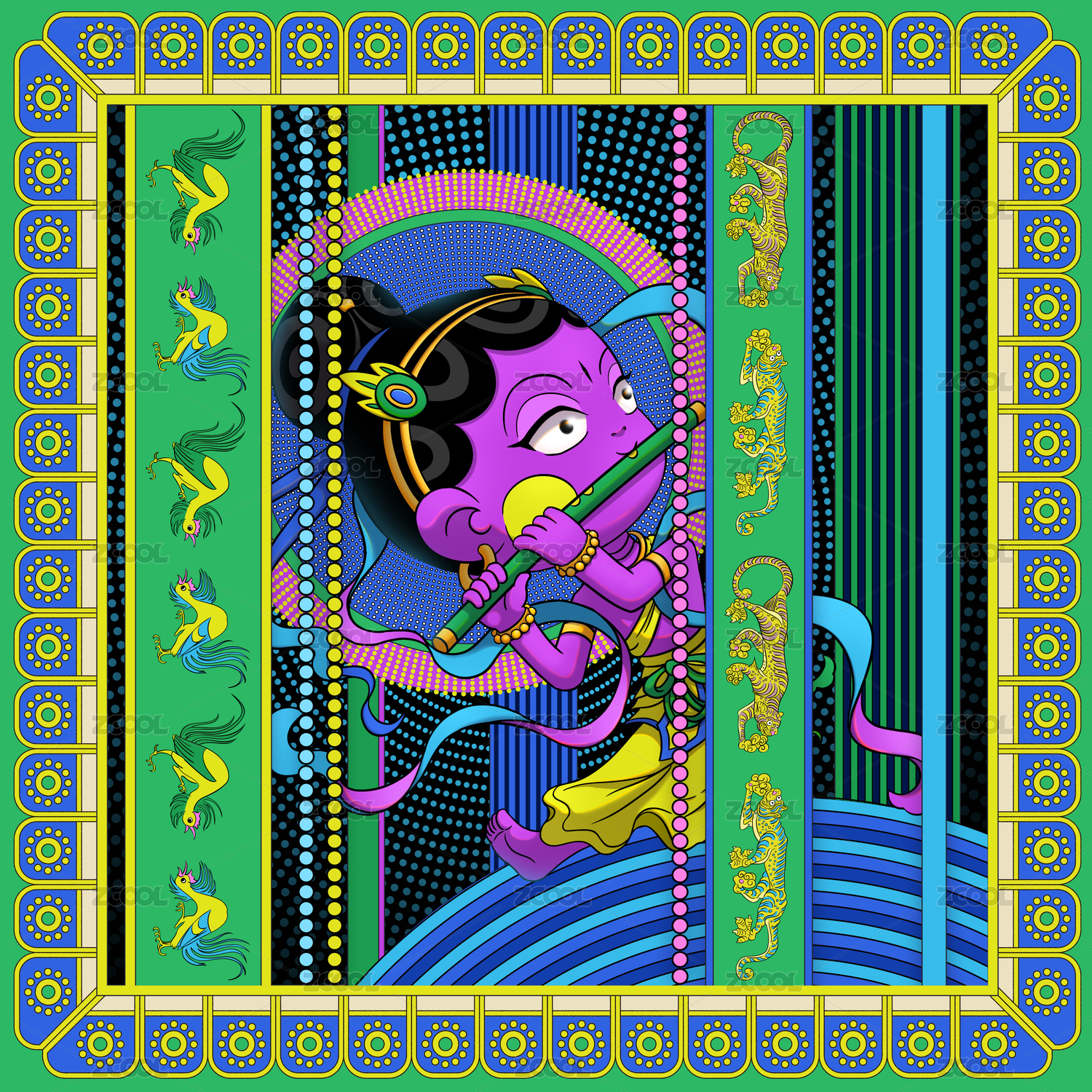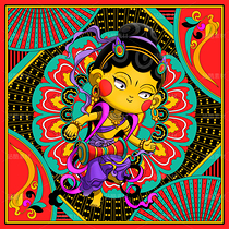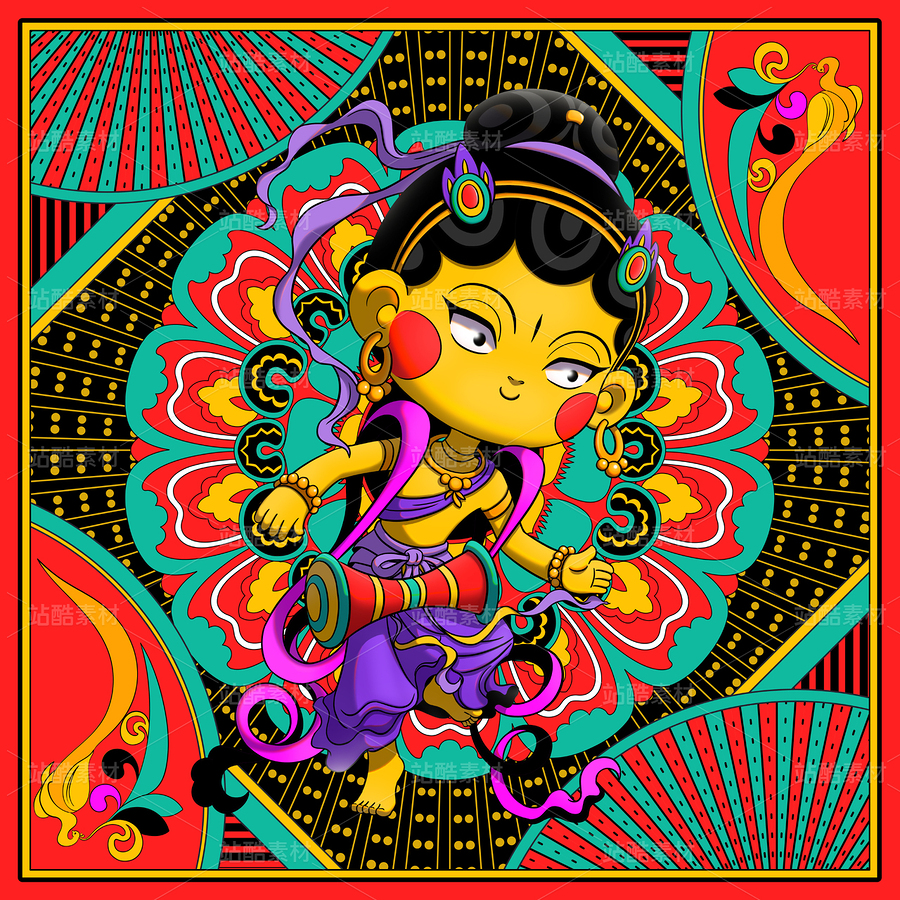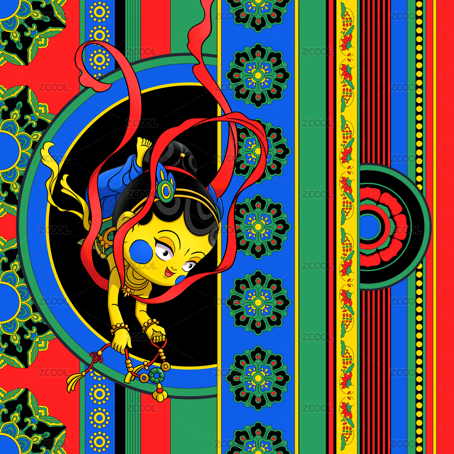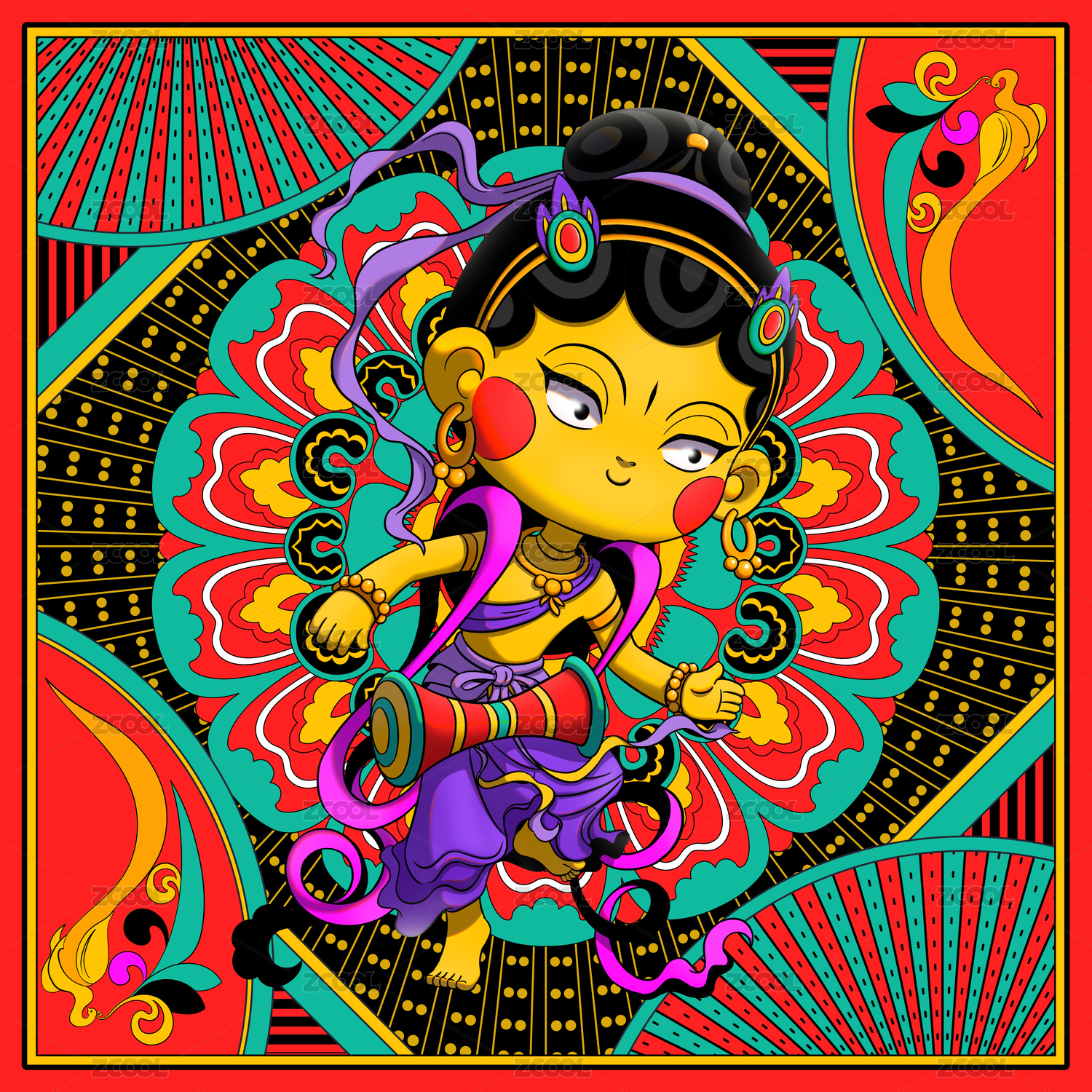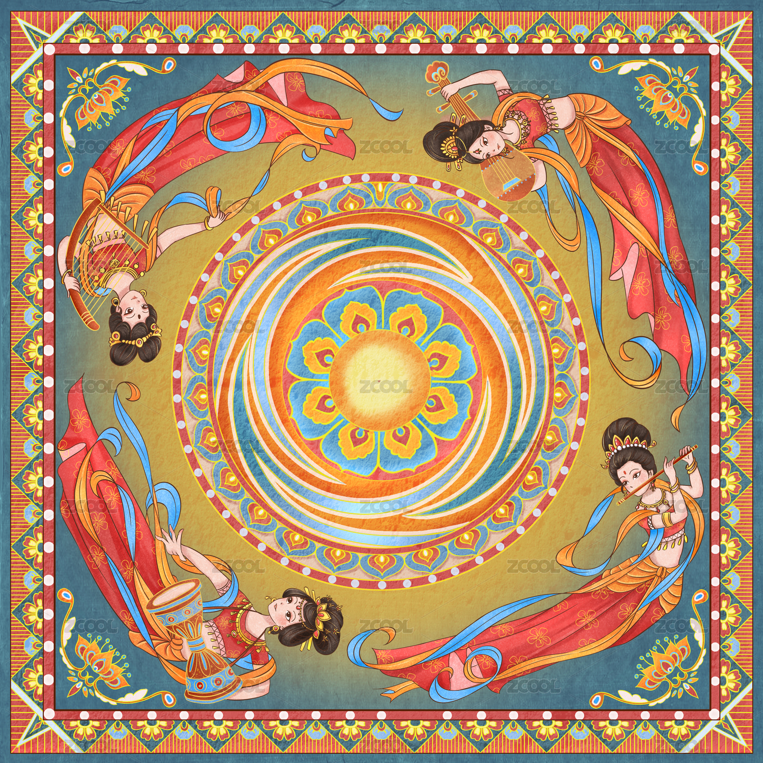 在我以前的印象中说起敦煌,我第一联想到的就是飞仙,不过后面收集和查看了不少的敦煌资料和画,我发现了敦煌藻井,藻井图案看上去真的是非常美丽壮观,于是我想把它绘制到自己的画中,与飞仙结合,用自己的绘画方式来展现我心目中的敦煌。