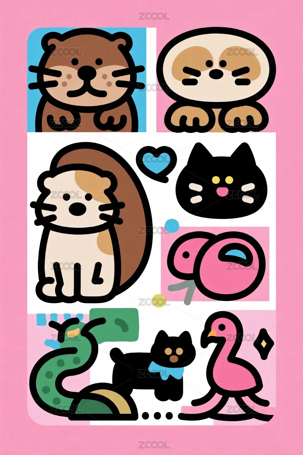 各种卡通可爱 小猫 猫咪 贴纸 png元素 免扣素材