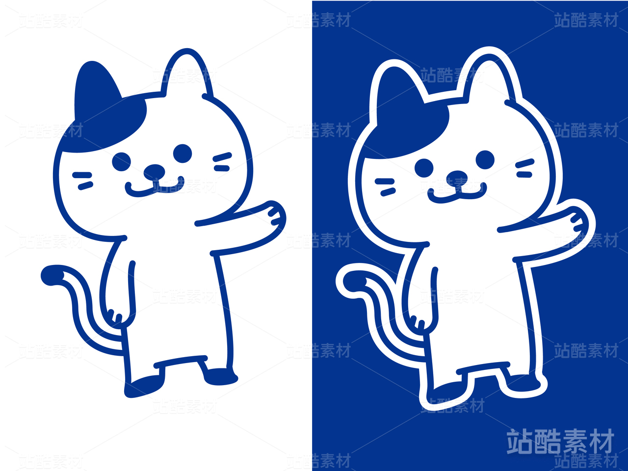 矢量蓝猫卡通线条插画咪咪