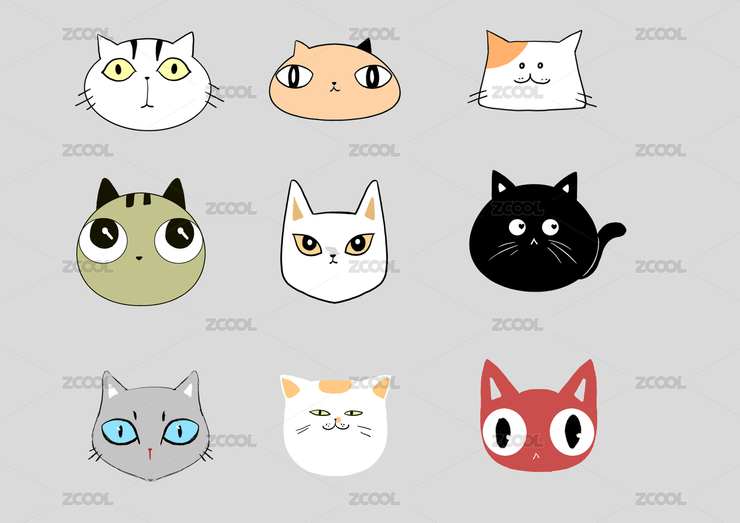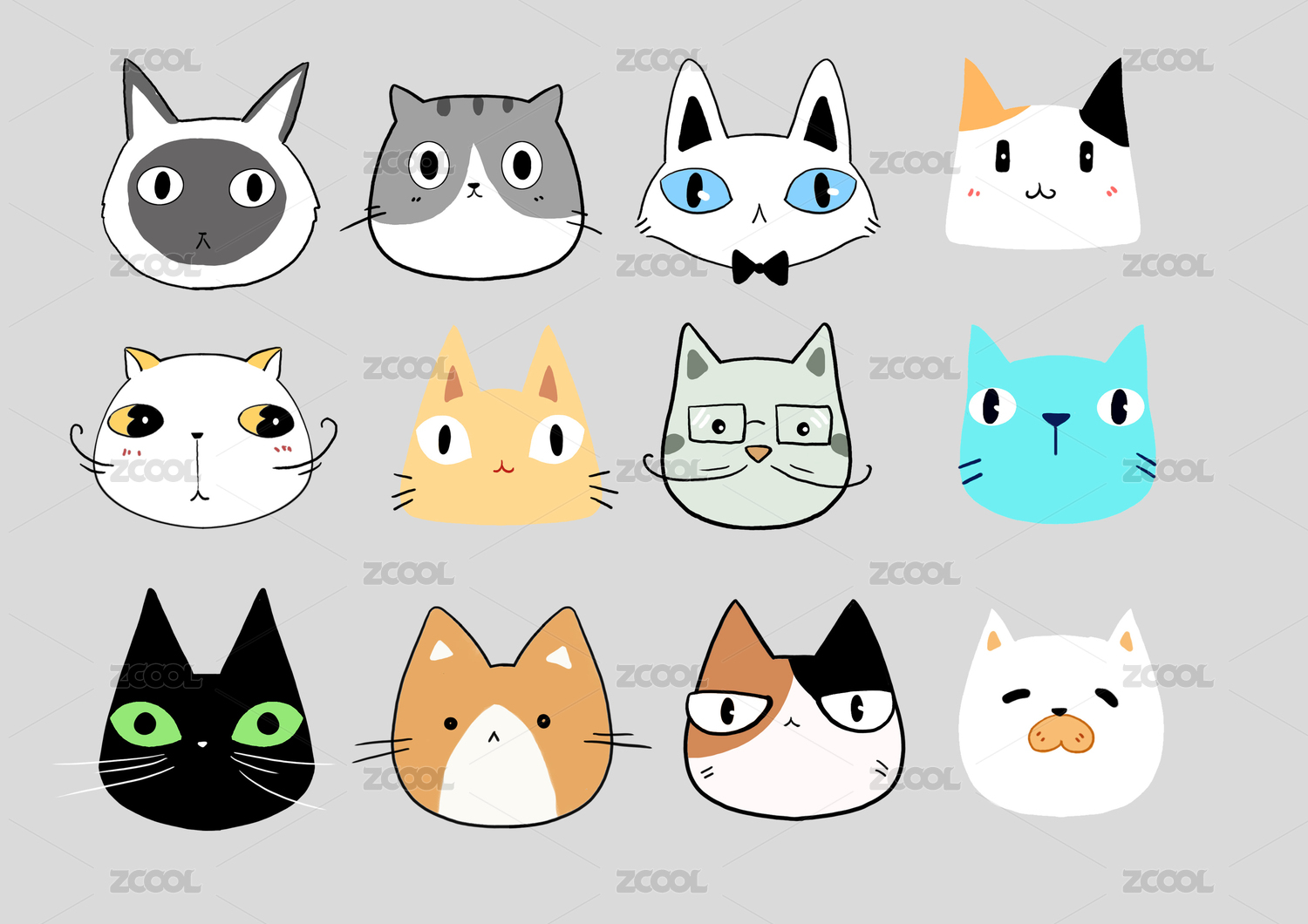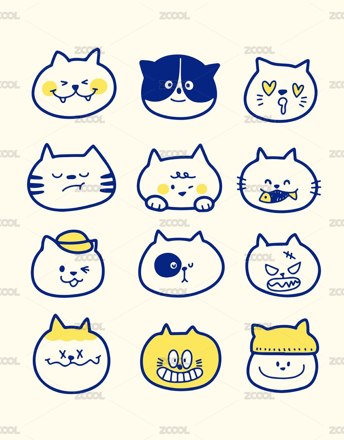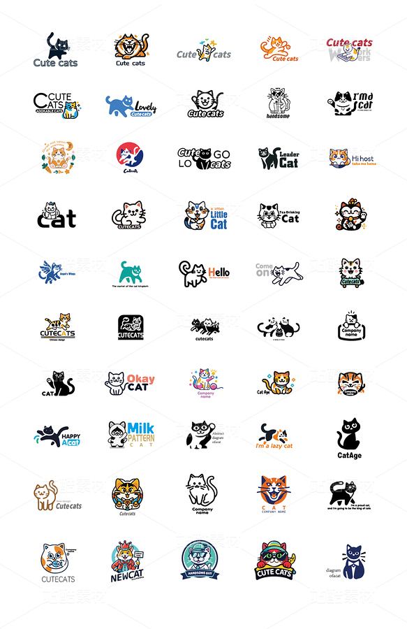 50个可爱猫猫-全套logo卡通