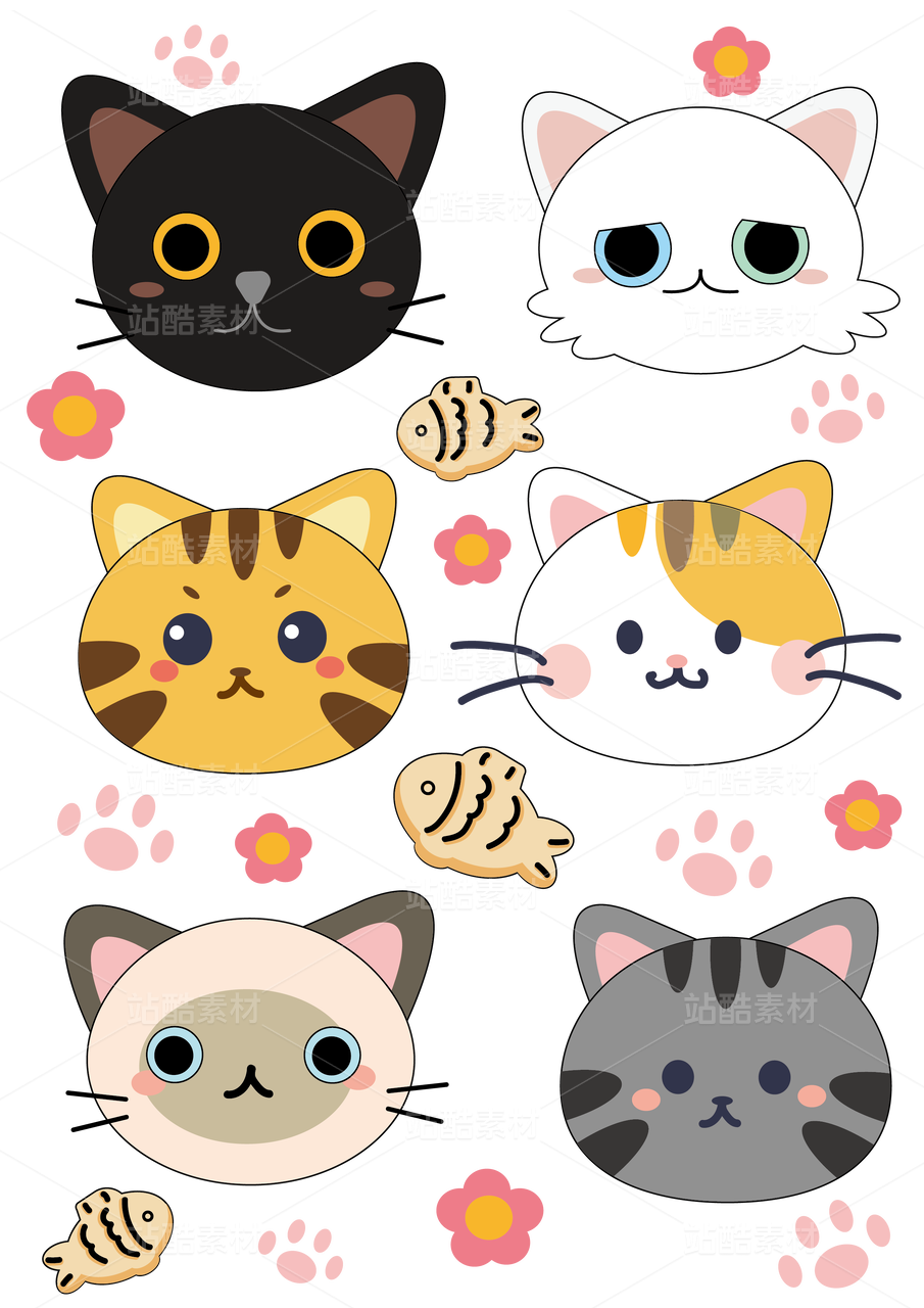 可爱猫猫主题元素插画