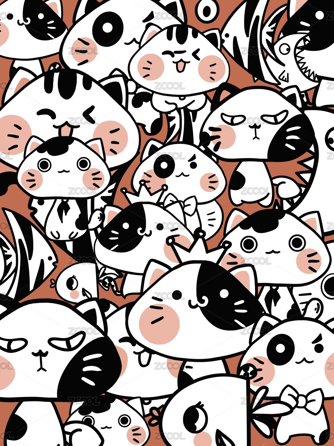 卡通可爱猫咪平铺图