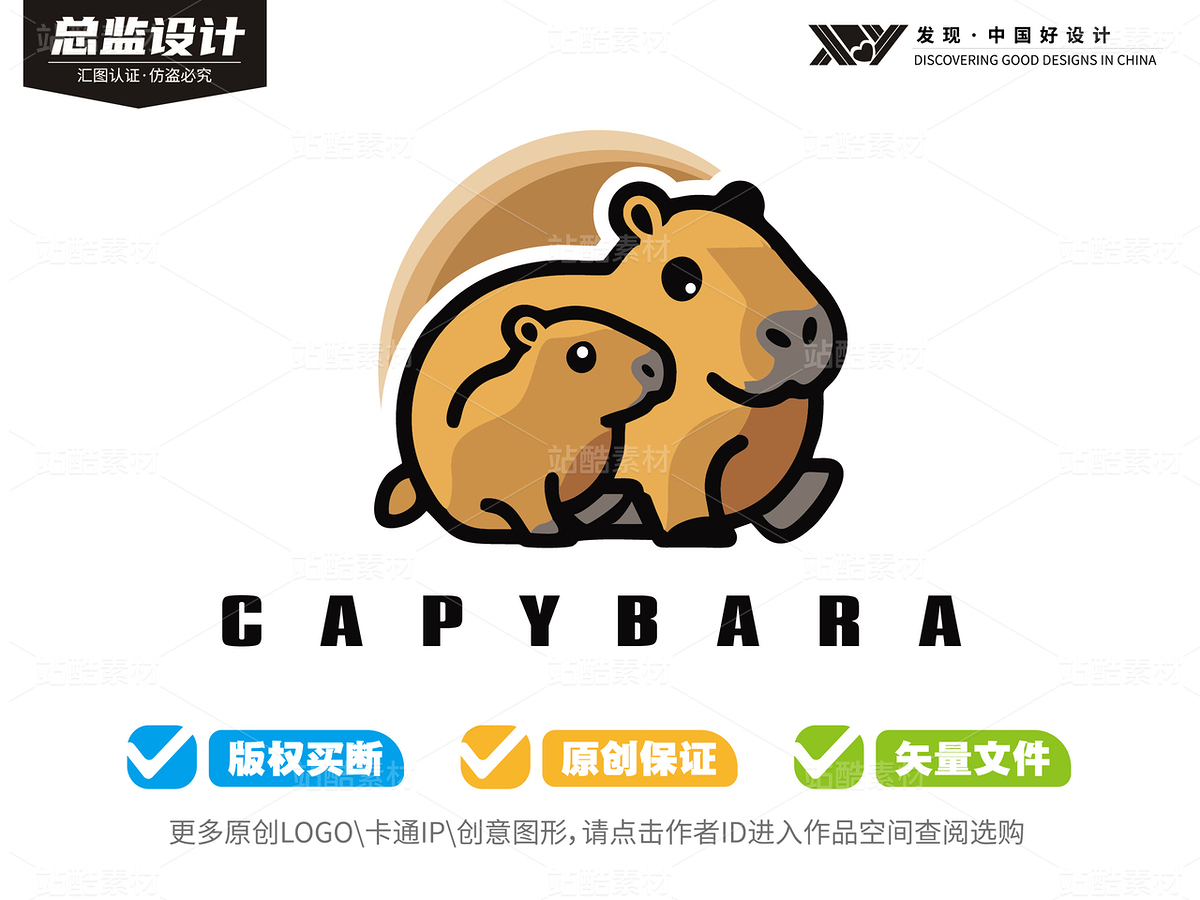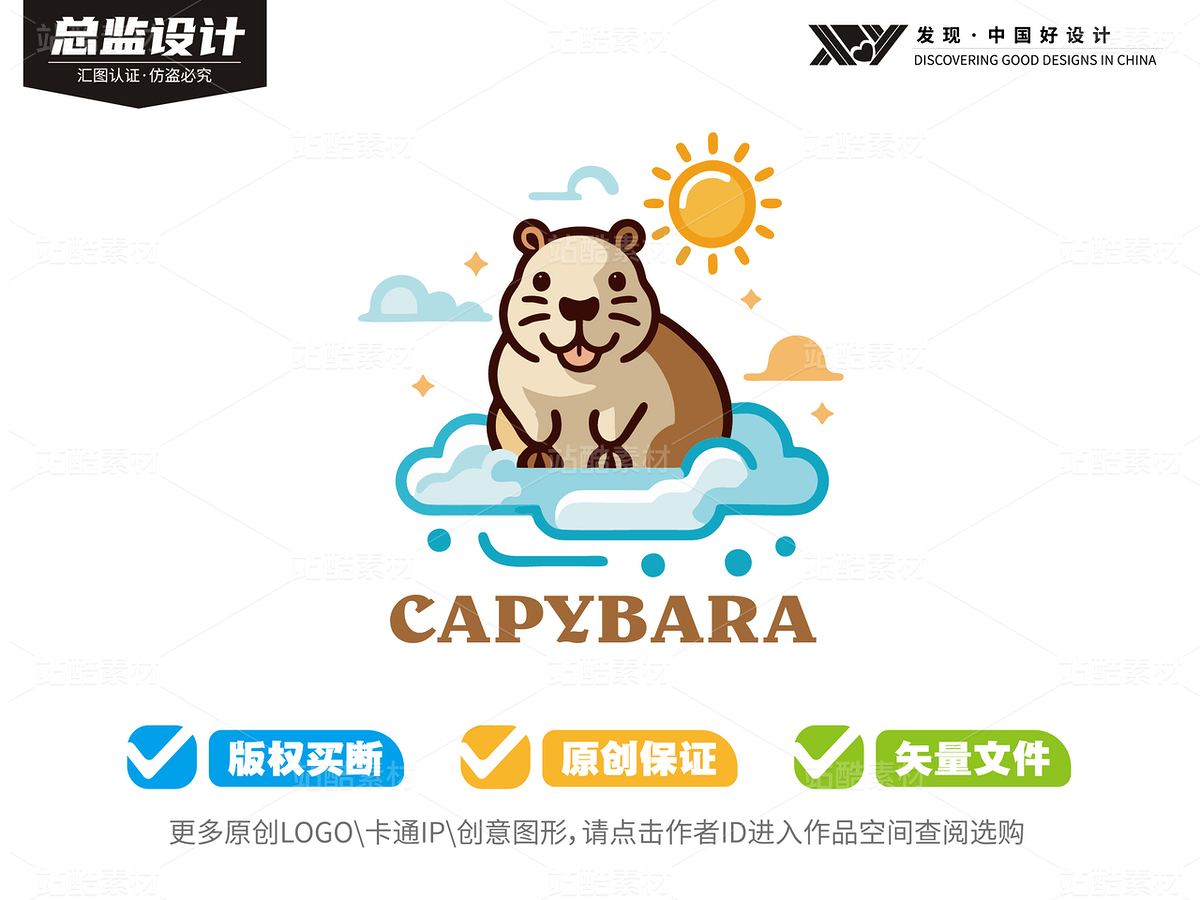 50个可爱的卡皮巴拉卡通动物LOGO设计