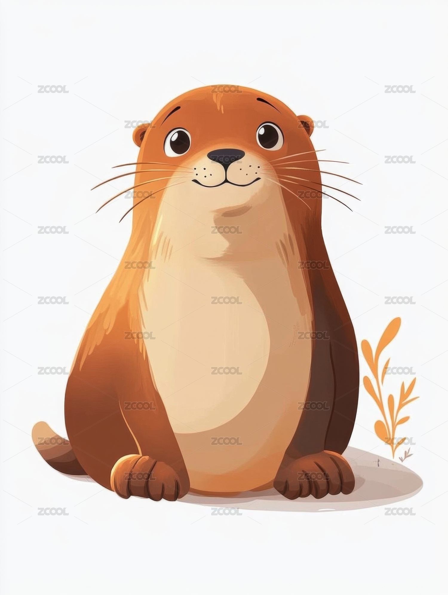 可爱的卡通水獭坐姿