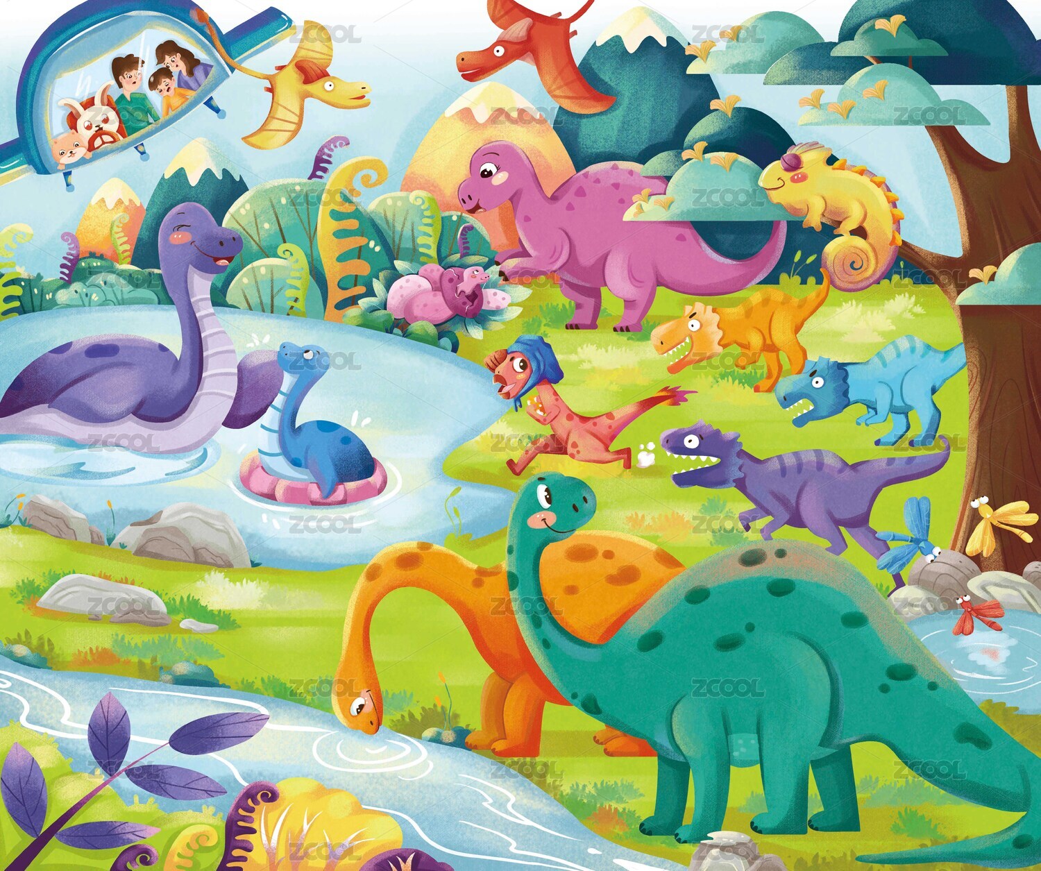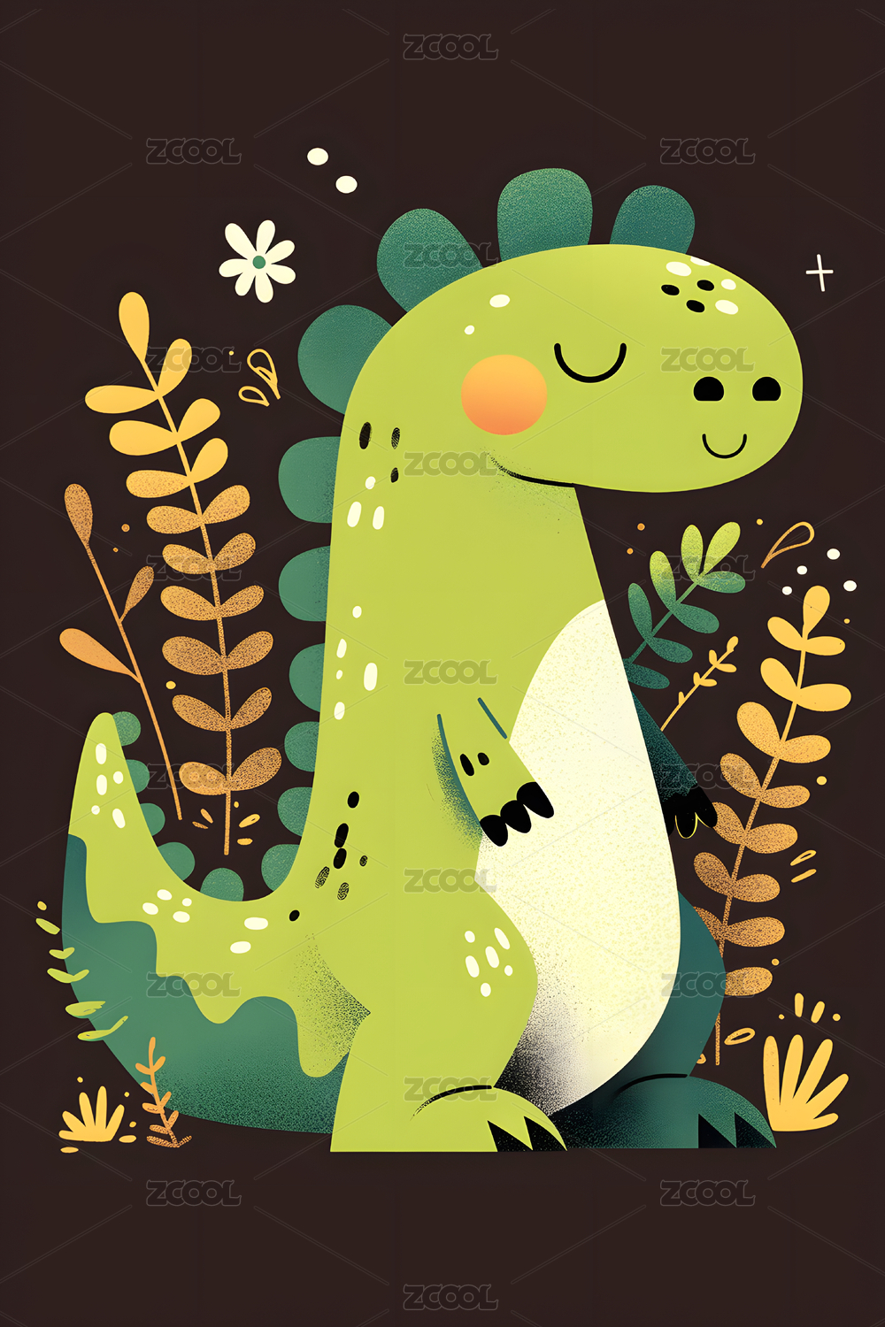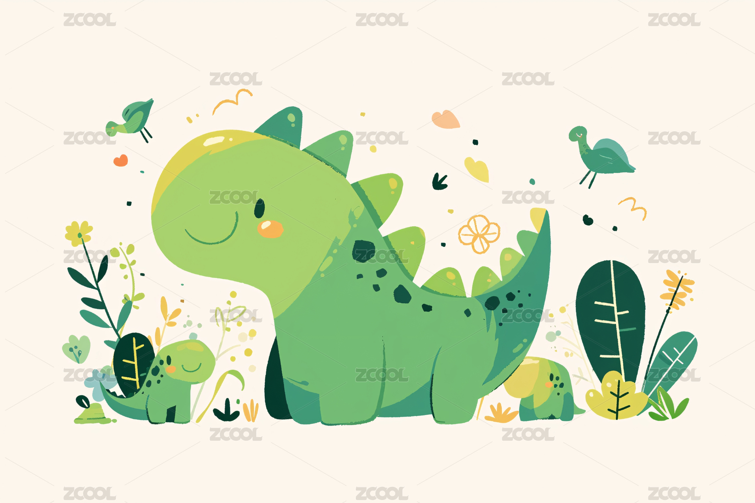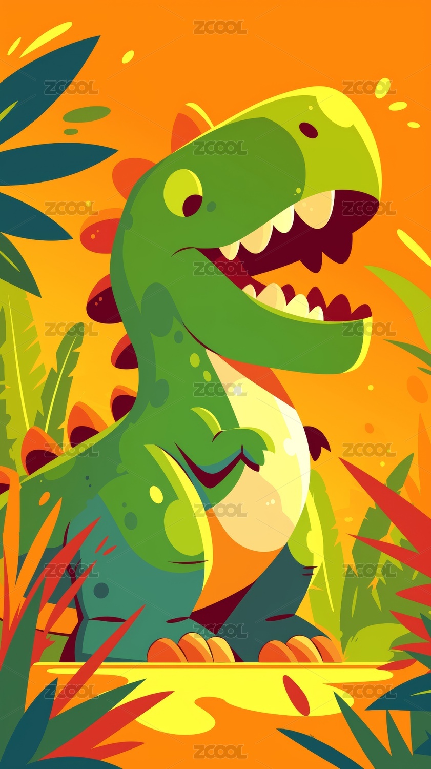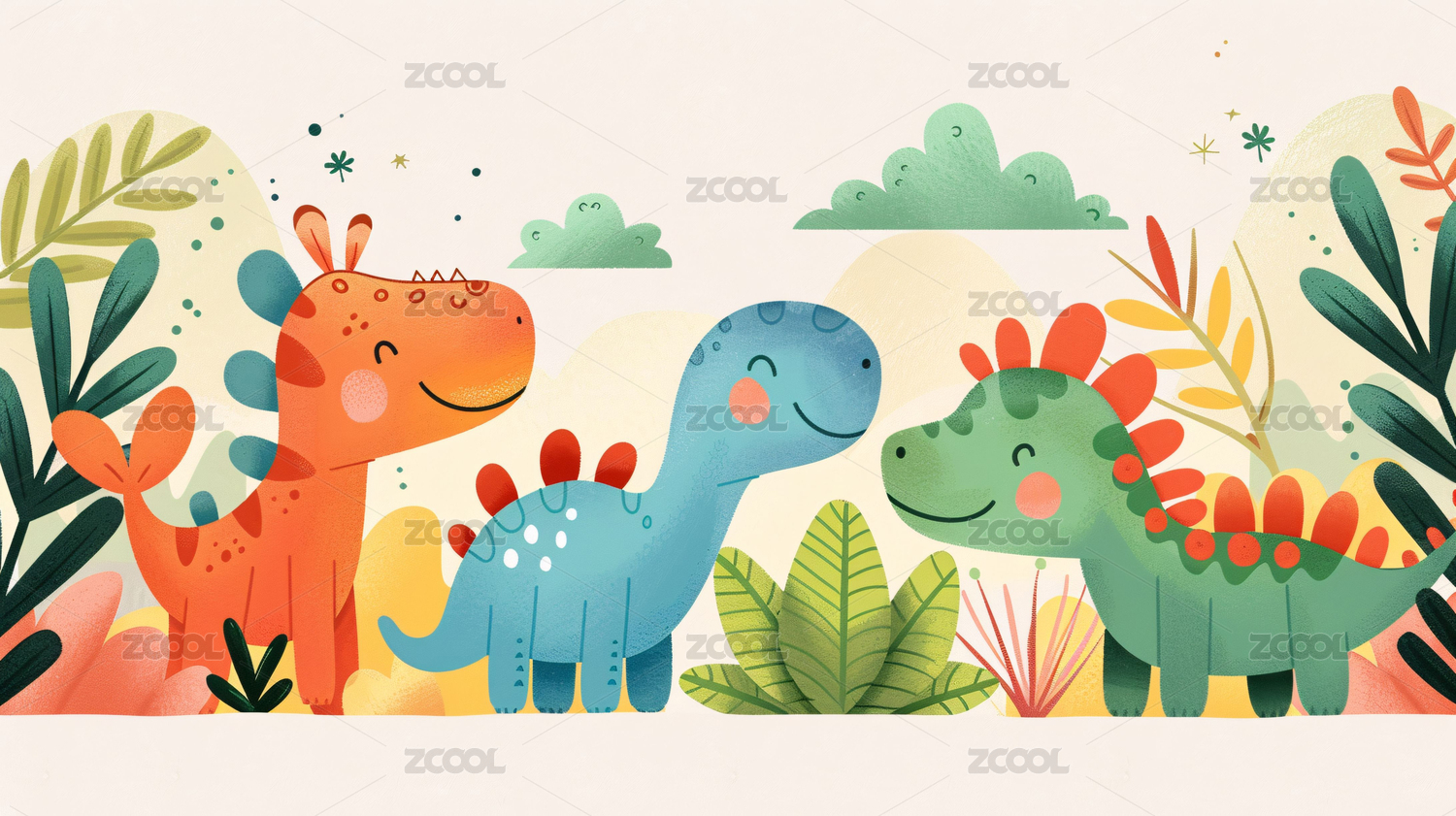 恐龙插画野生动物可爱卡通儿童节海报背景