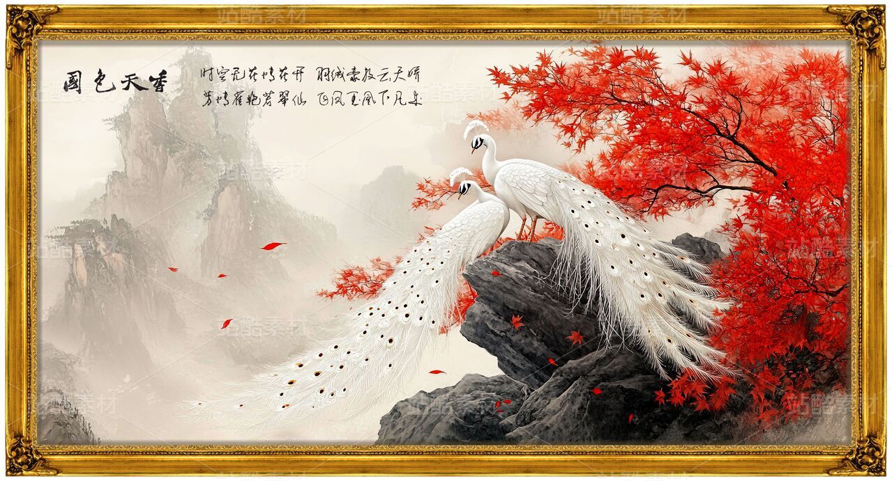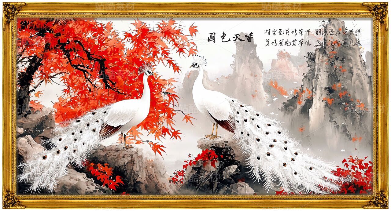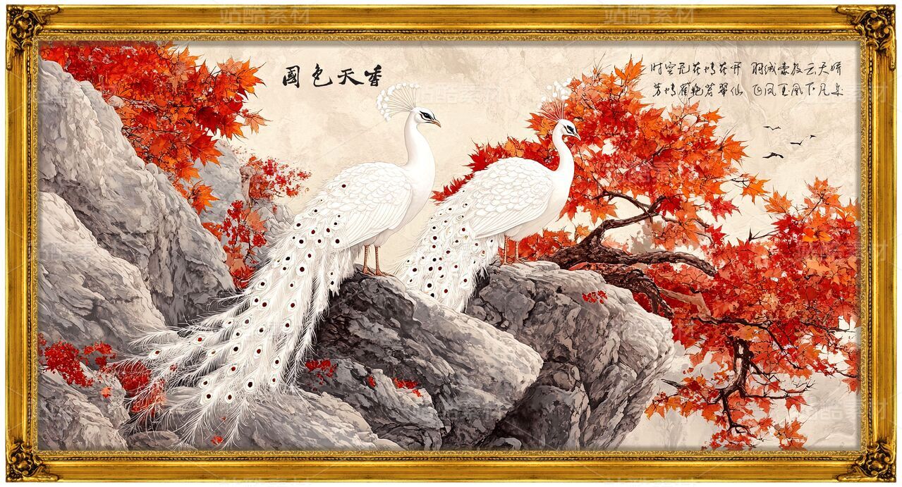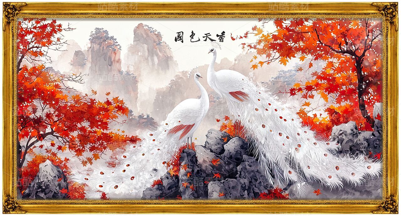 精选图集高清绘画中式客厅白色神鸟凤凰枫叶枫树,孔雀牡丹花开富贵油画装饰画客厅大厅框画高清设计素材,国色天香水墨风客厅画字画墙矢量电子版花卉片电子图电子版沙发背景墙壁挂画走廊玄关,近现代江寒汀作品花鸟写意树绘画临摹