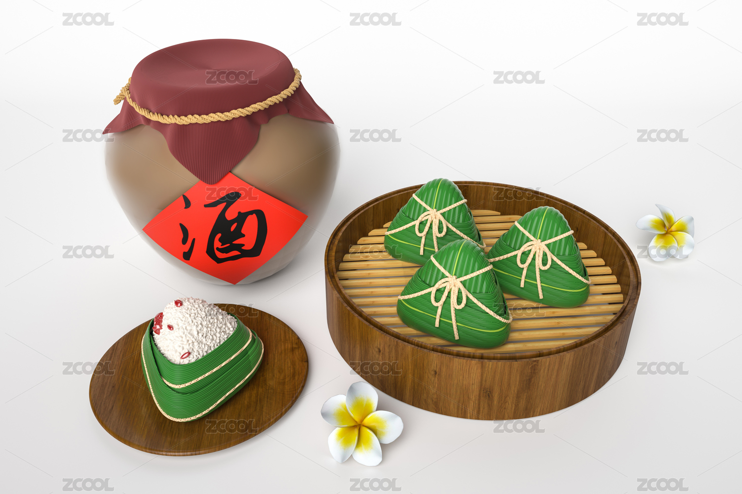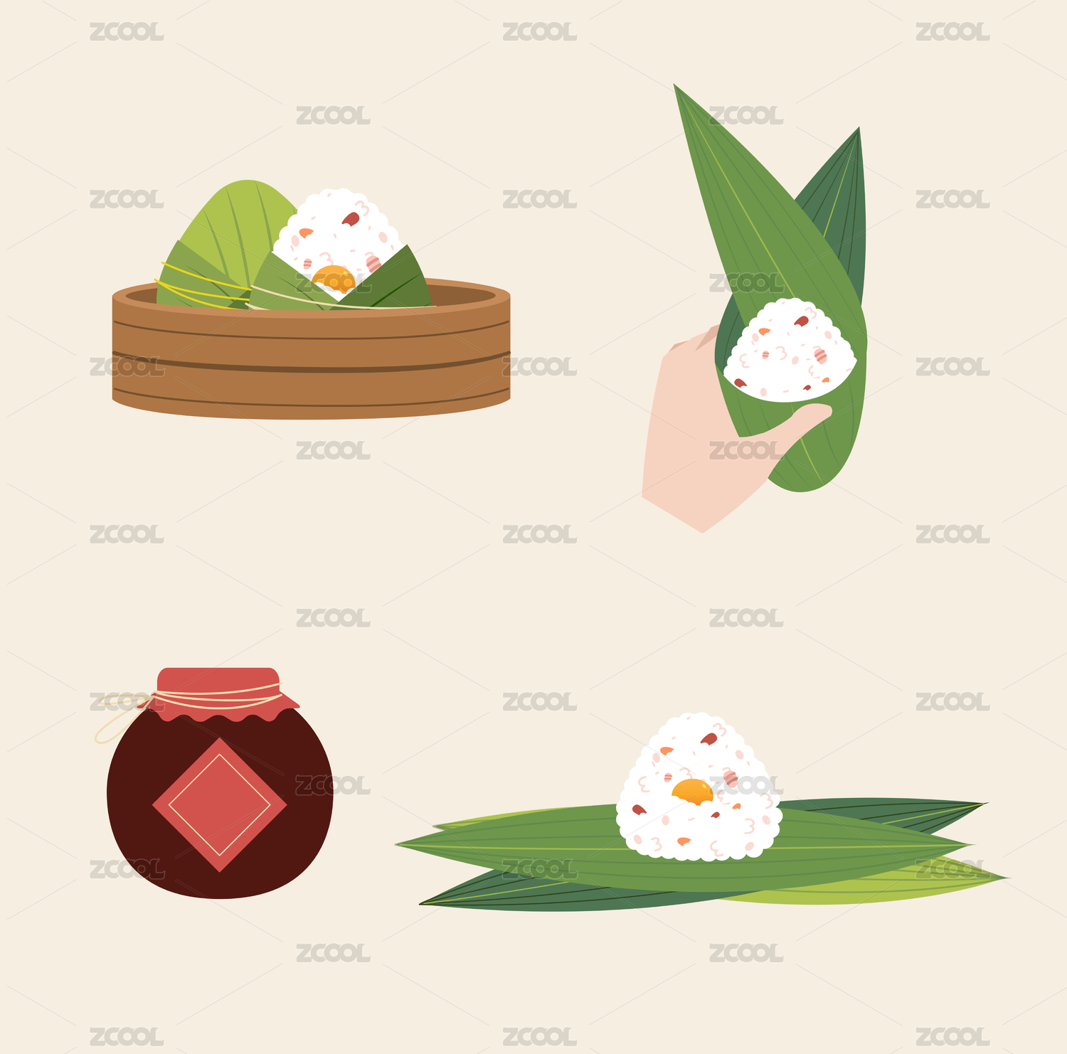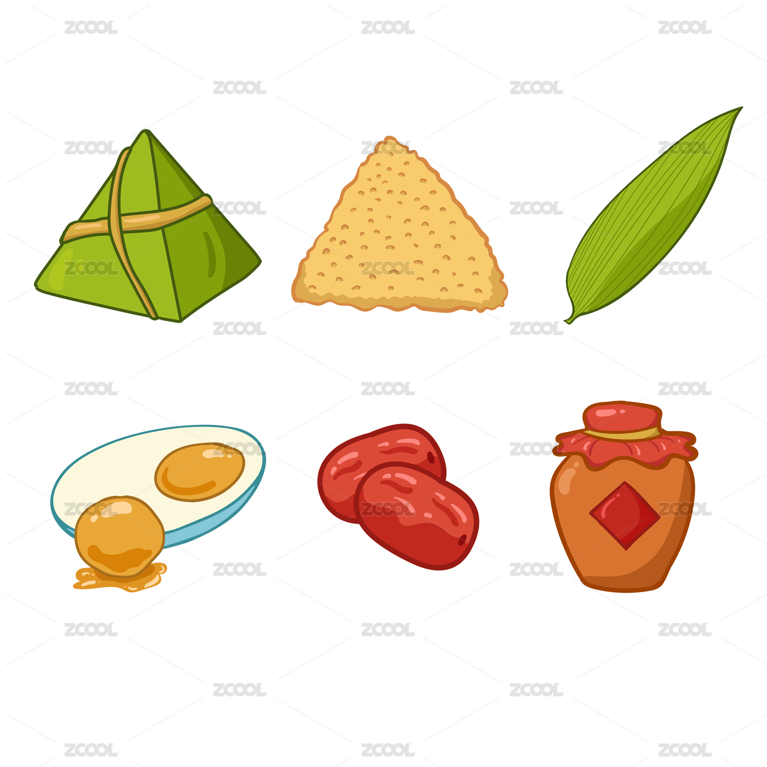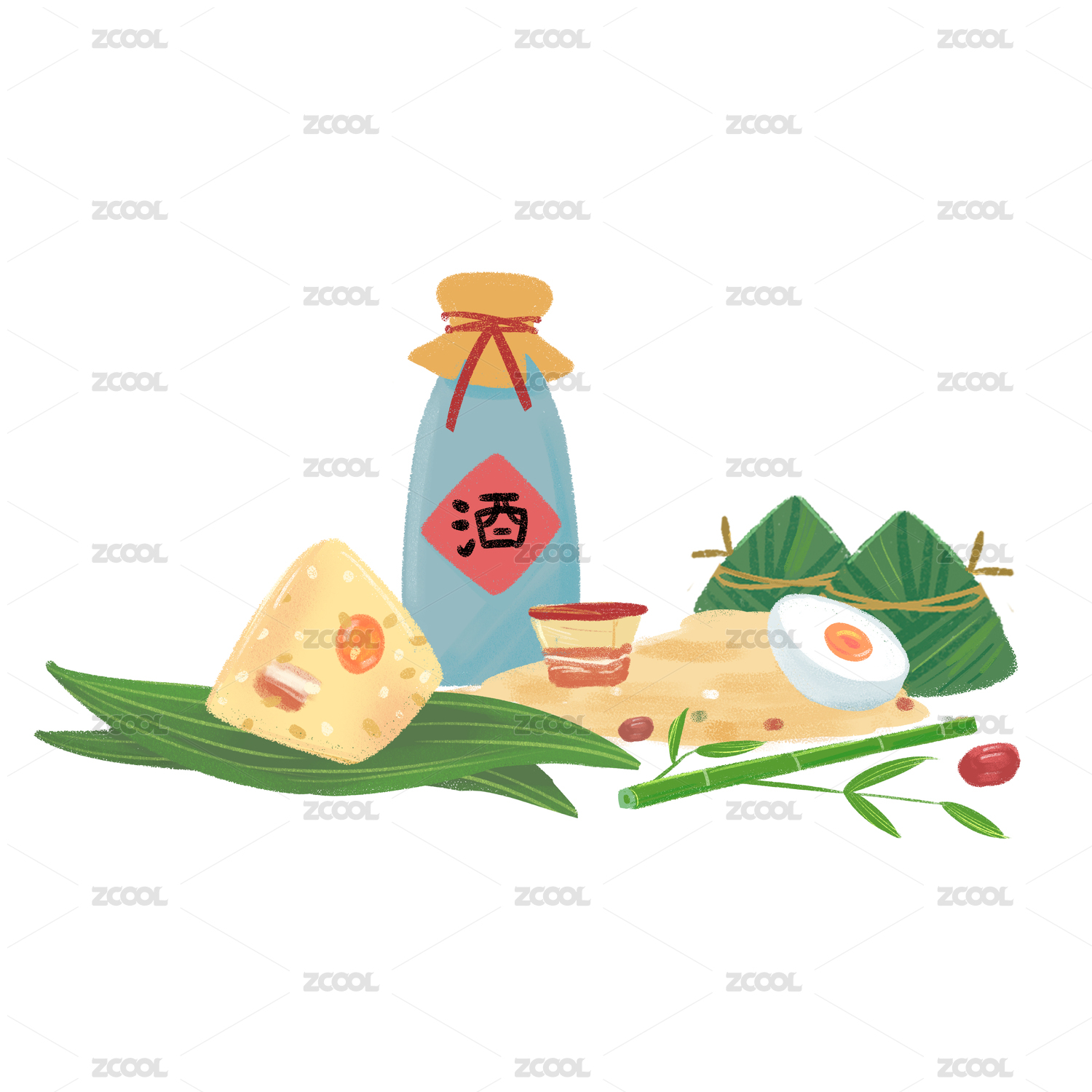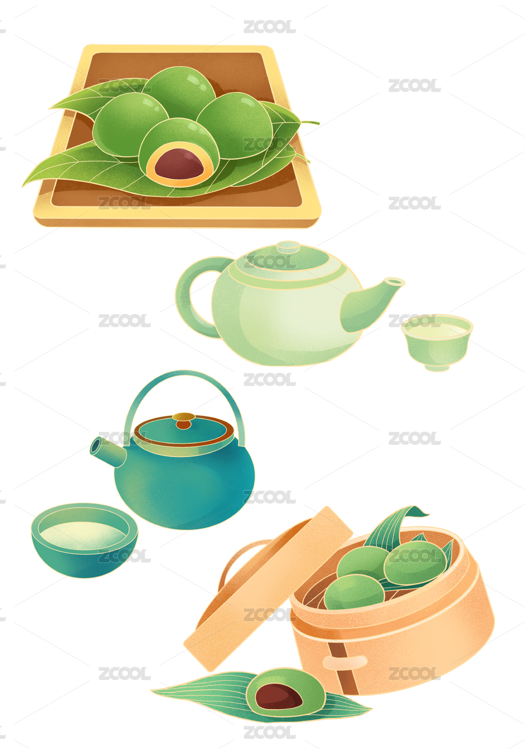 手绘清明国风插画素材青团蛋黄酥酒坛