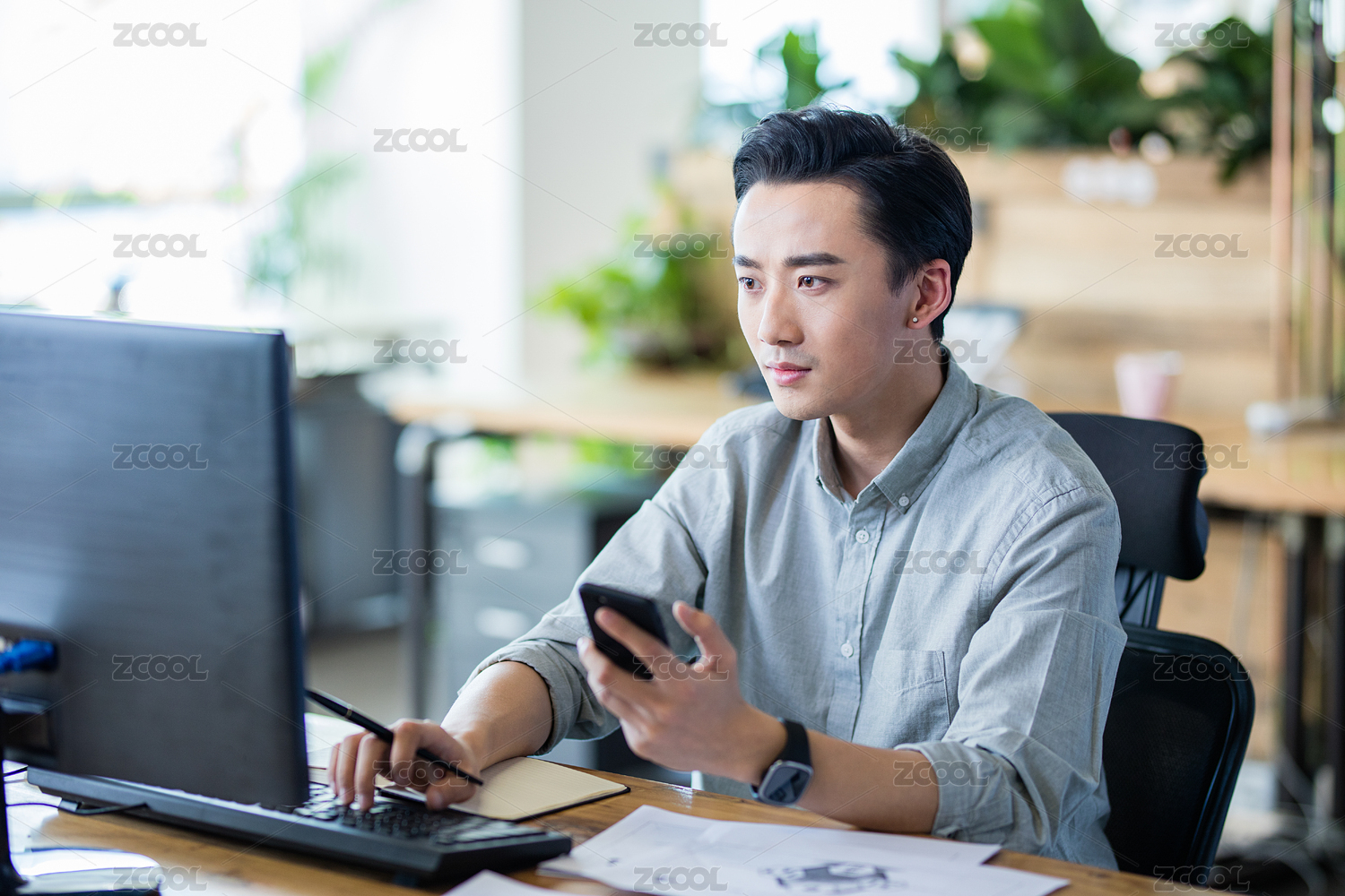 商务男士在办公室工作