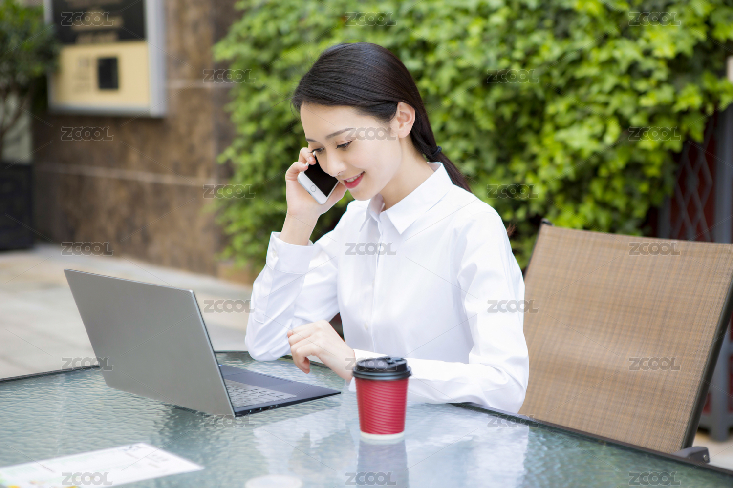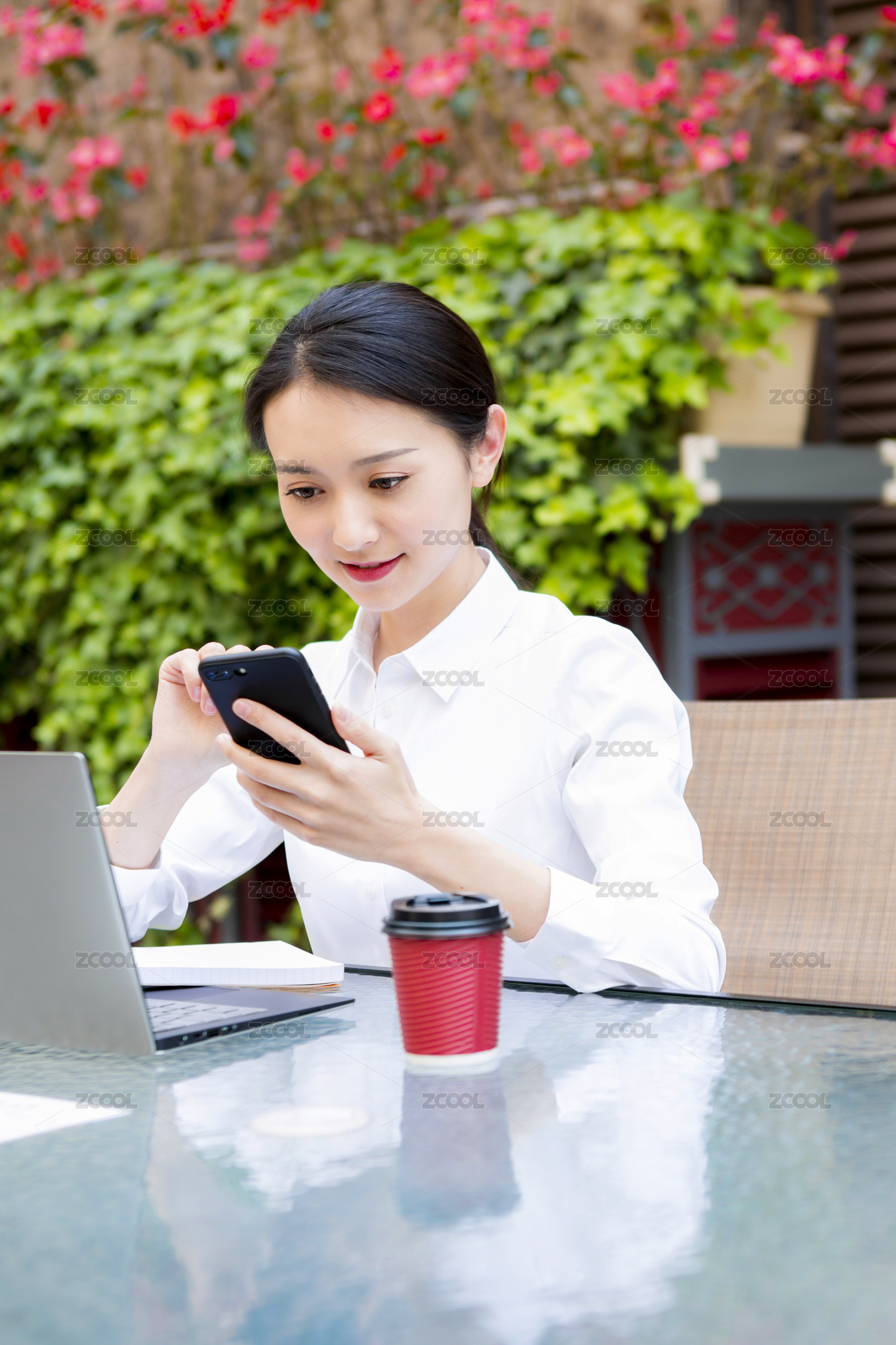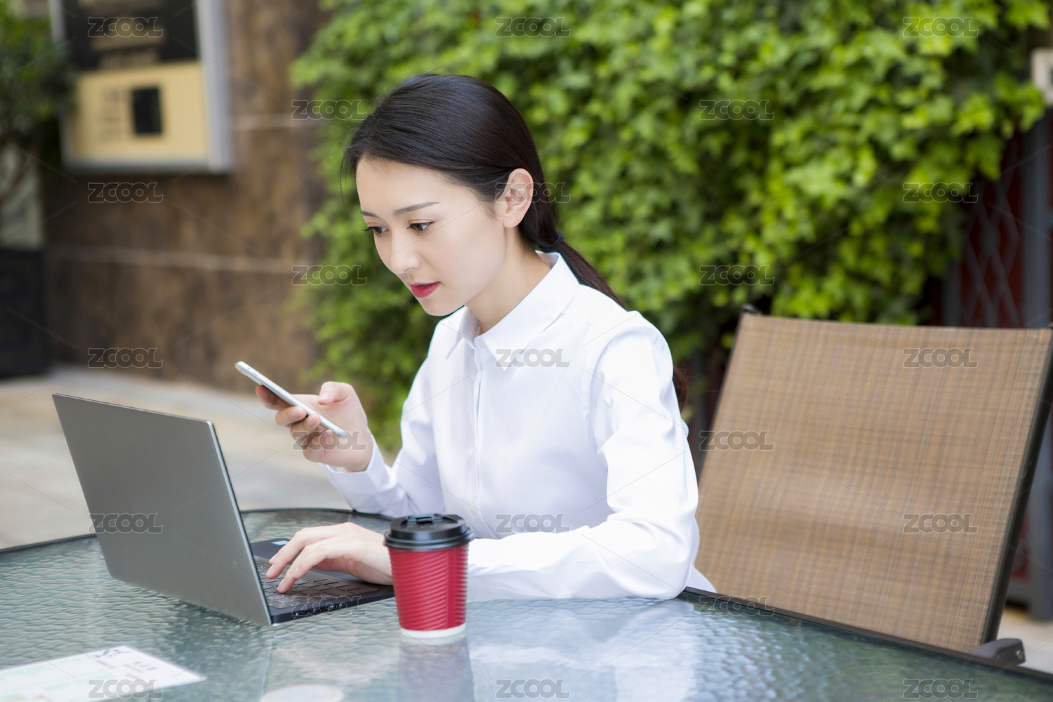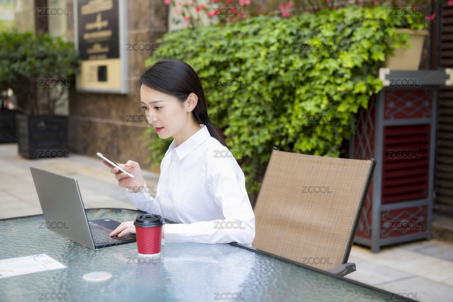 移动办公的年轻女性