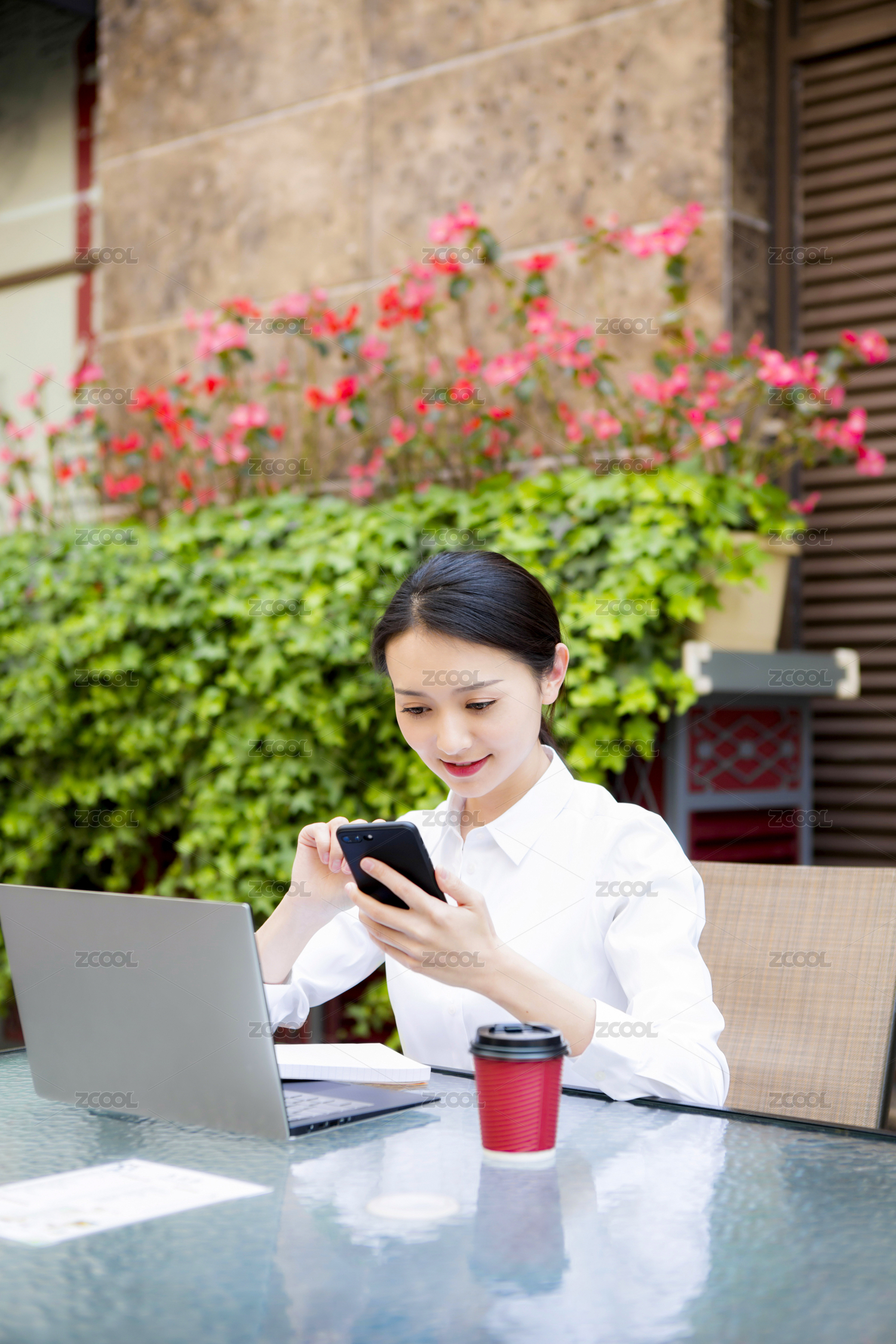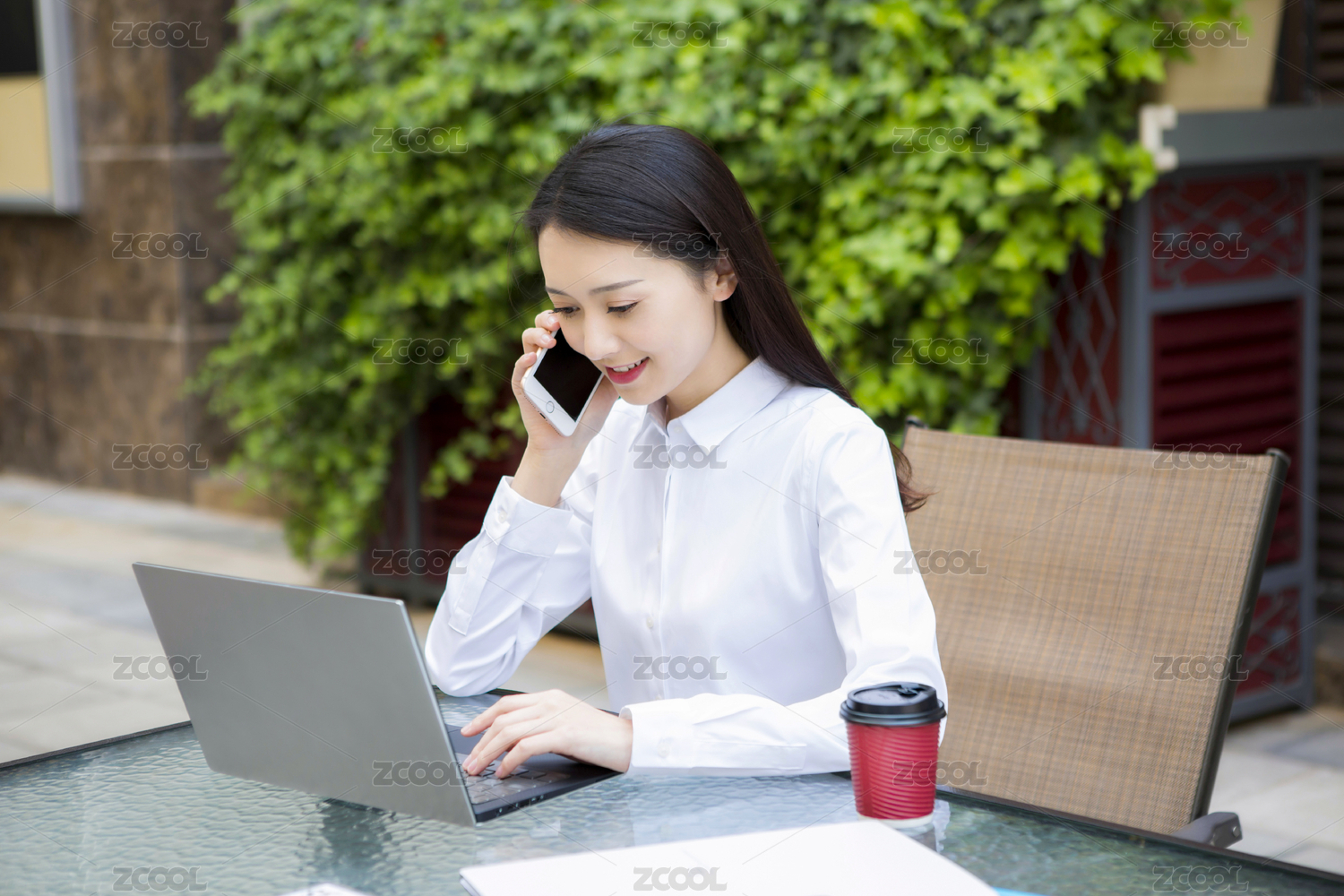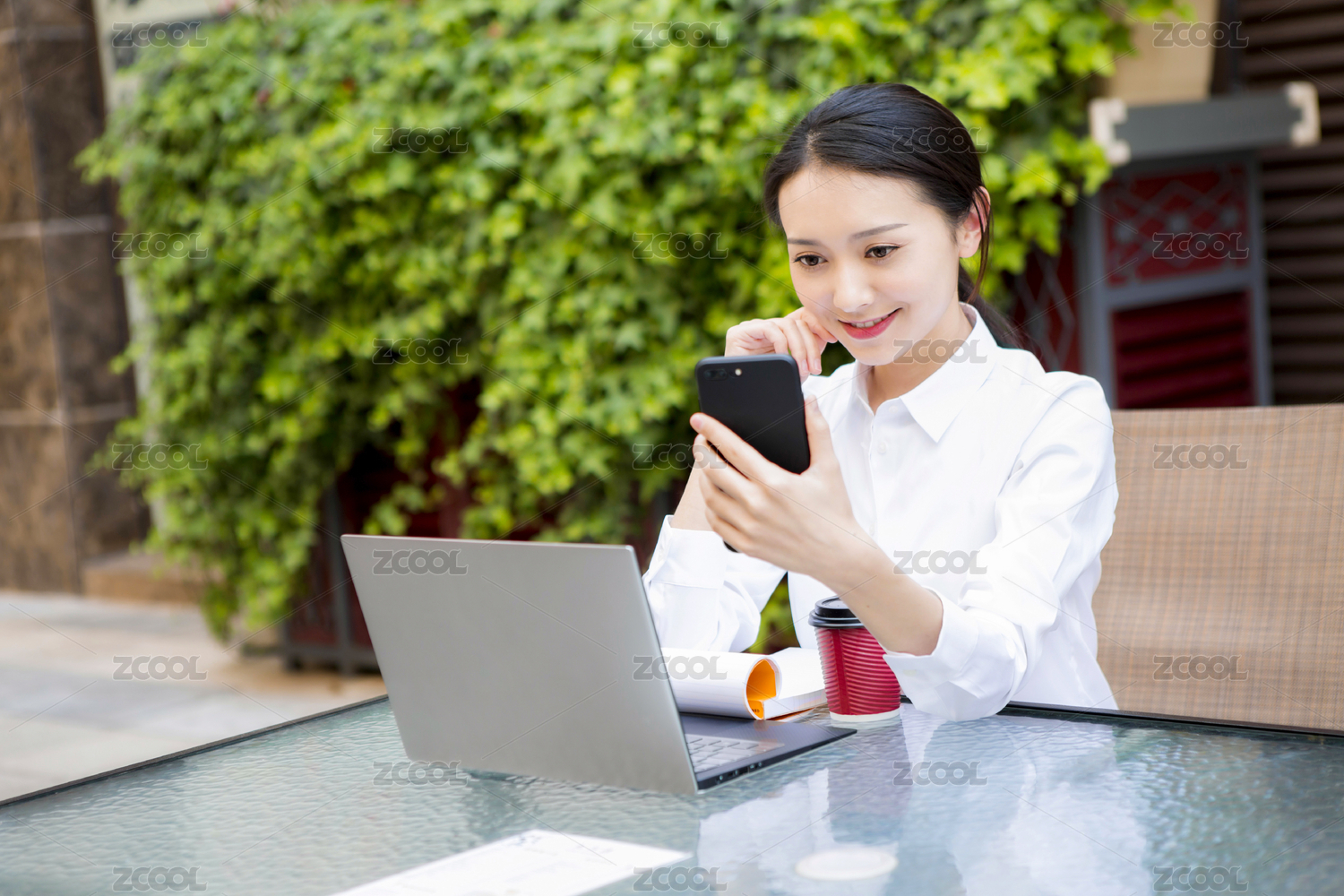 移动办公的年轻女性
