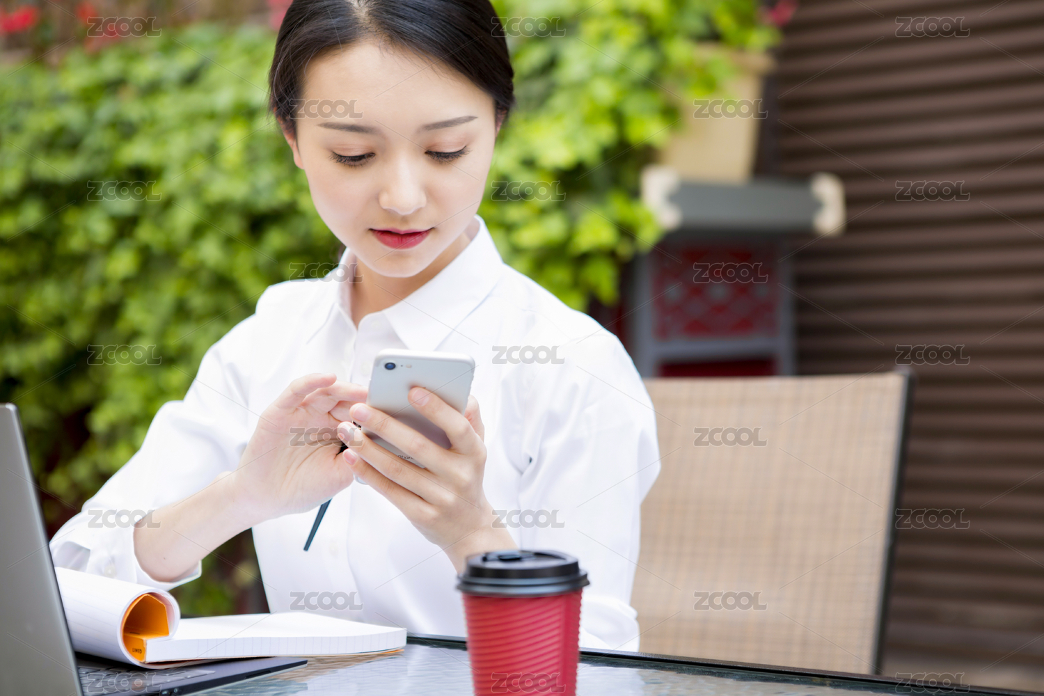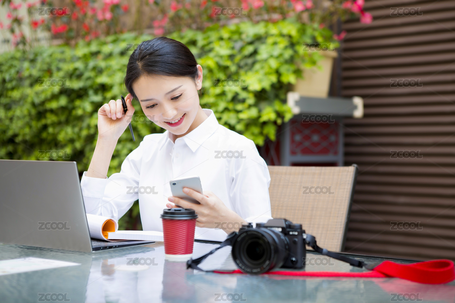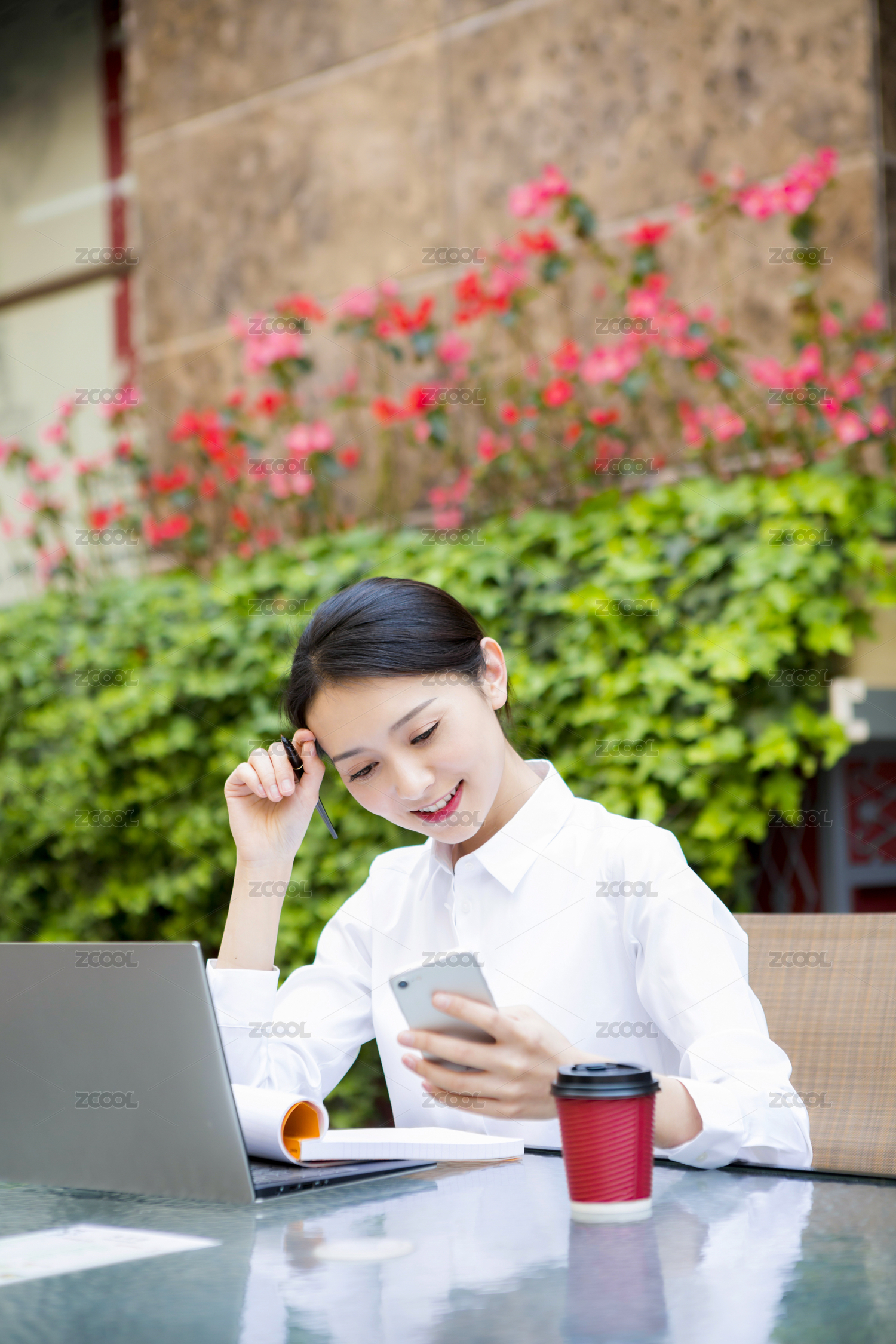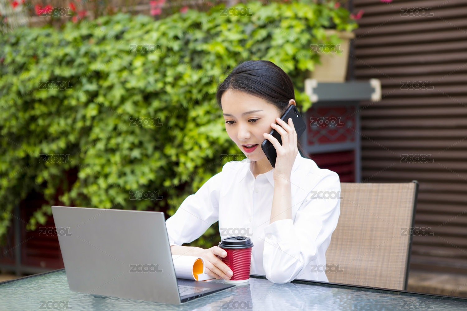 移动办公的年轻女性
