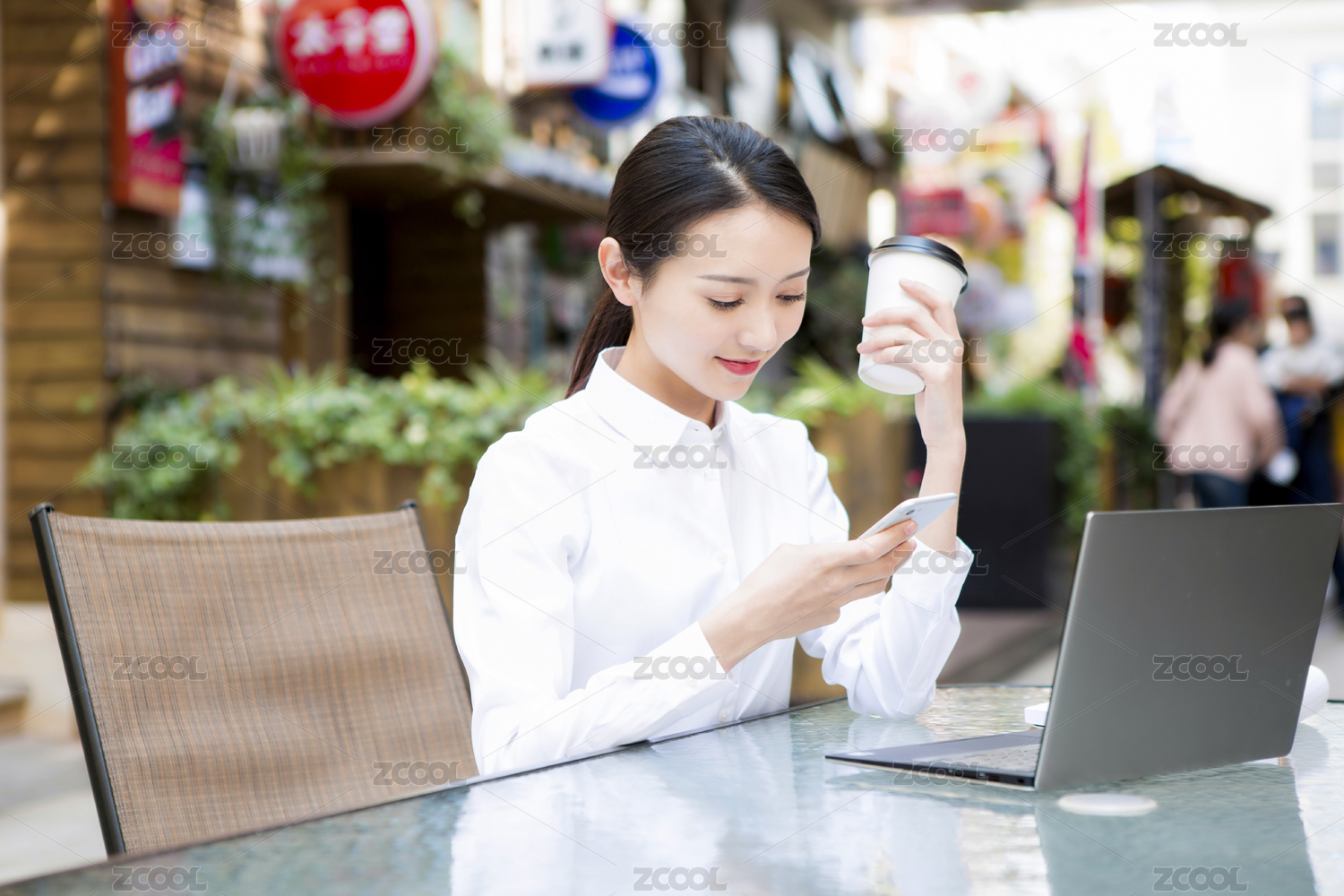 在户外使用电脑的商务女士