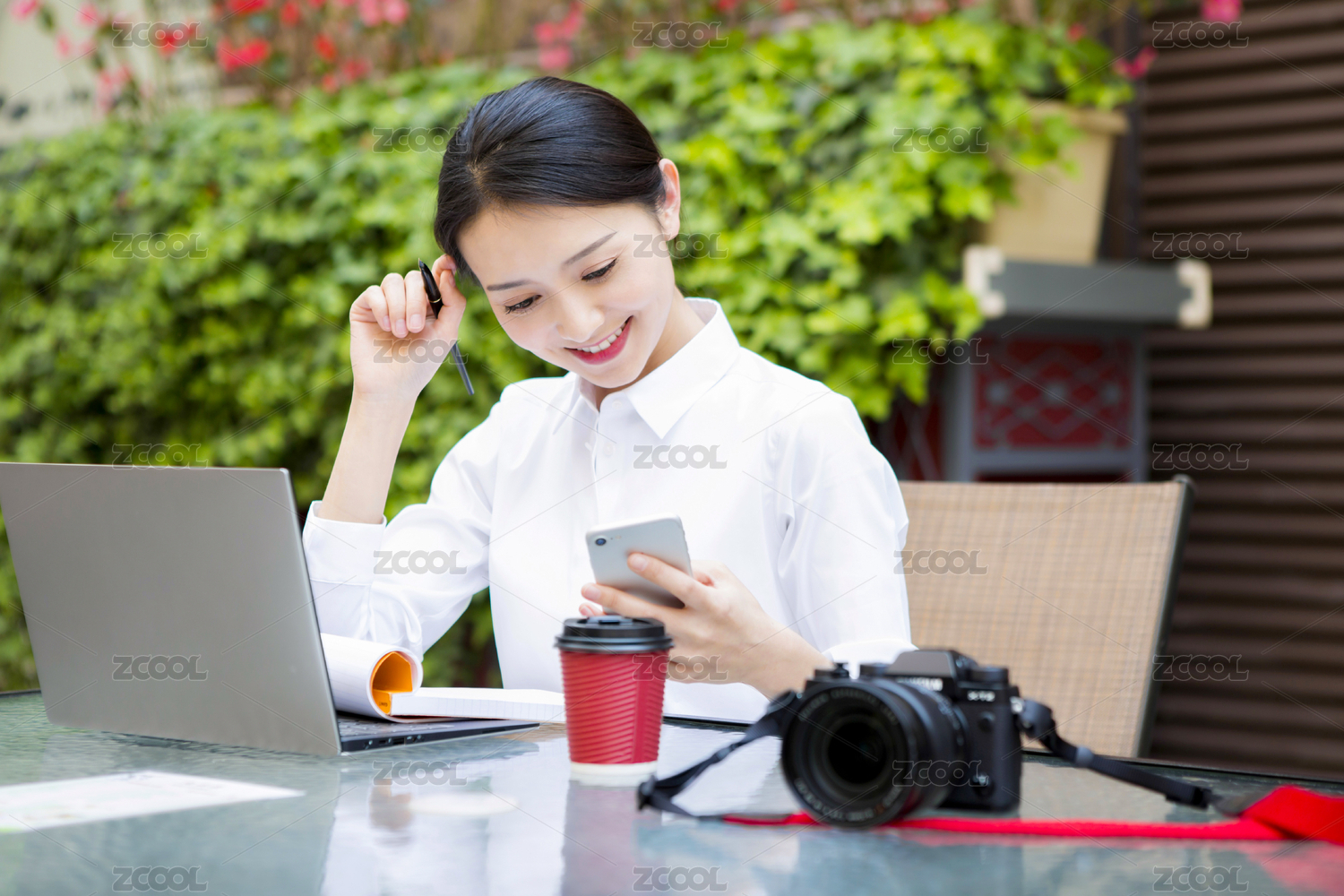 移动办公的年轻女性