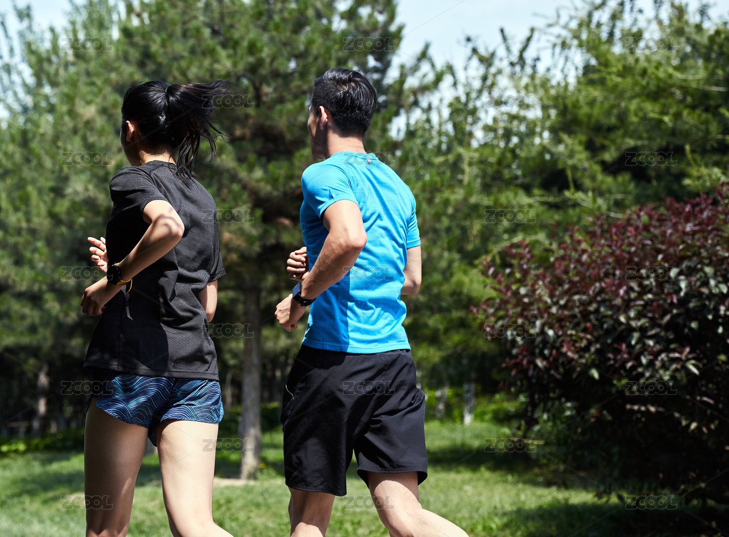 年轻男女在公园跑步
