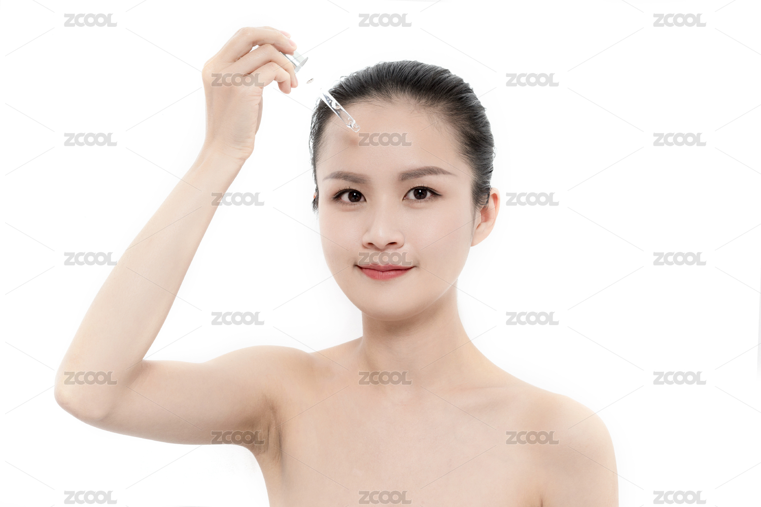 年轻女性脸部使用精华护肤