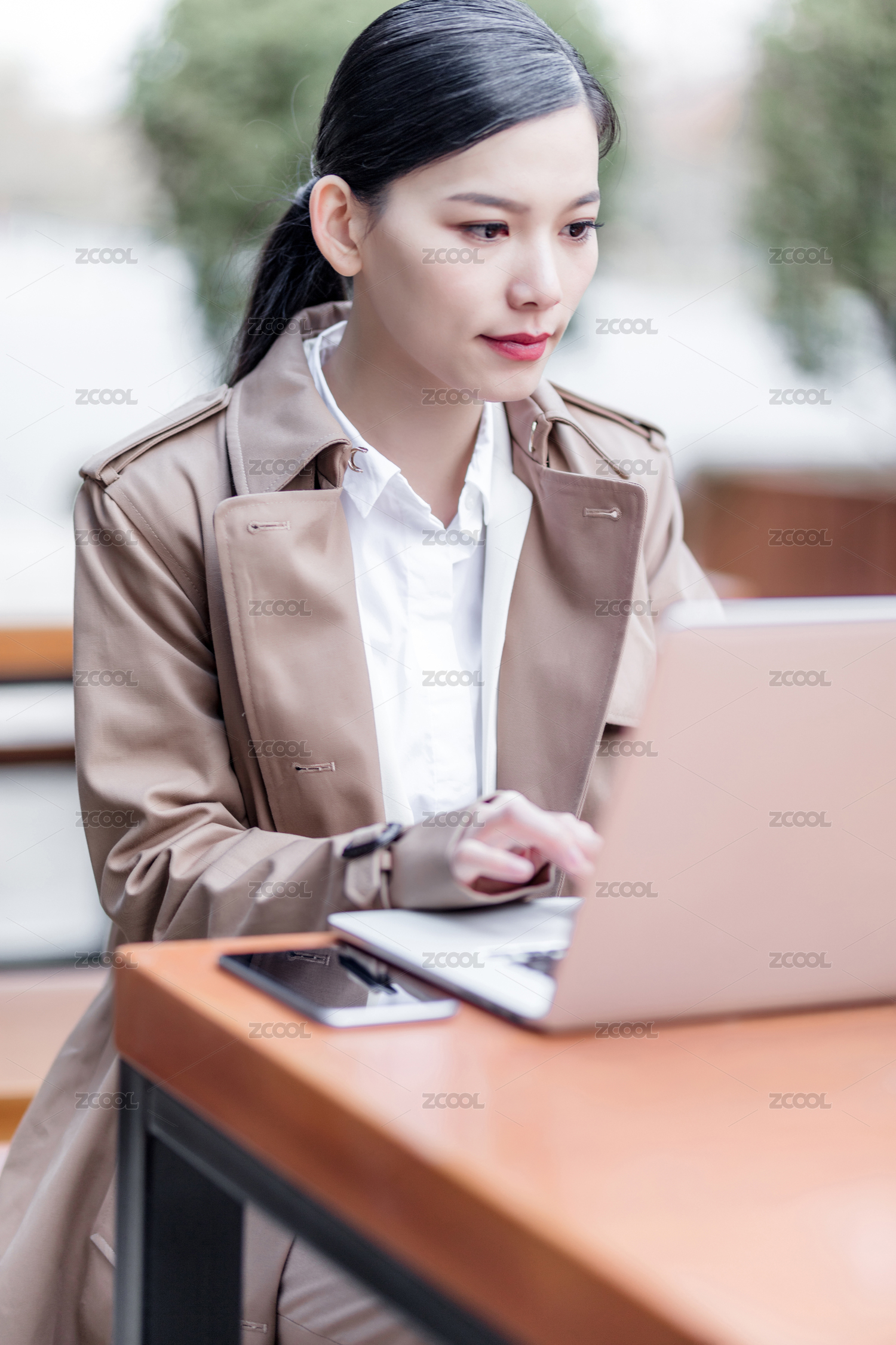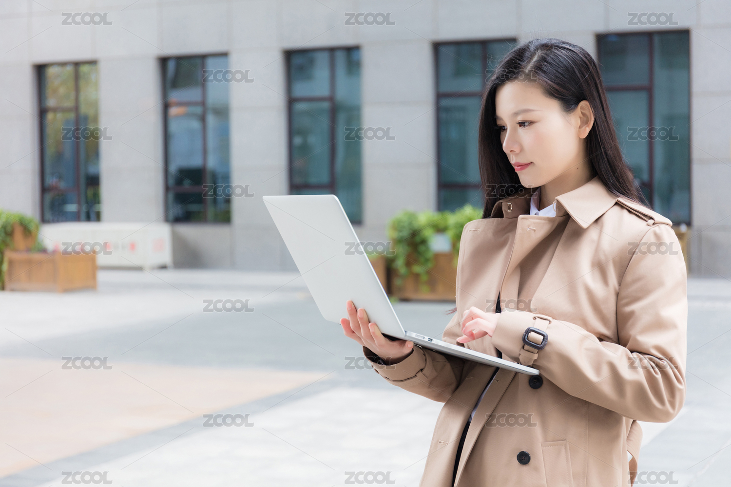 户外办公的商女士