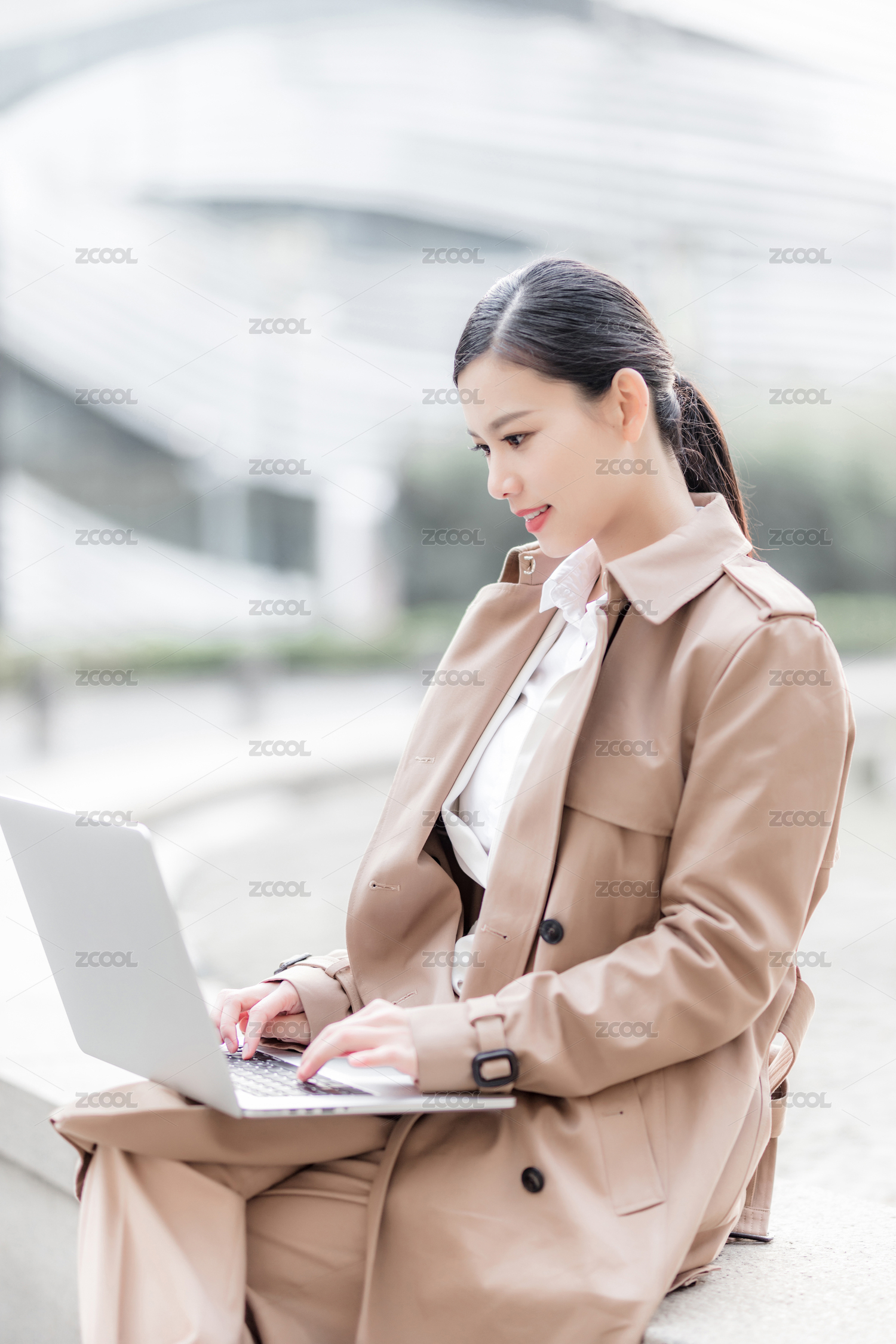 户外办公的商务女士