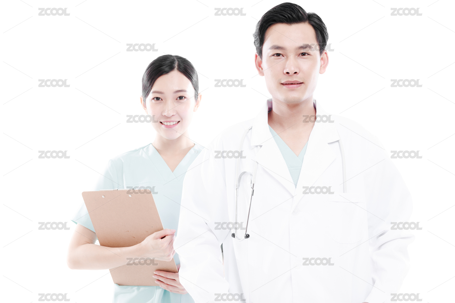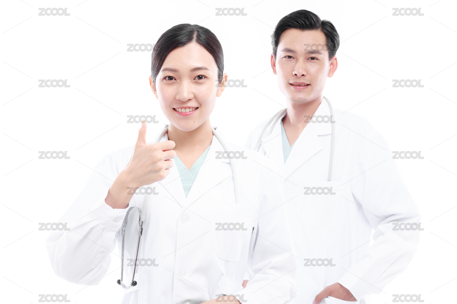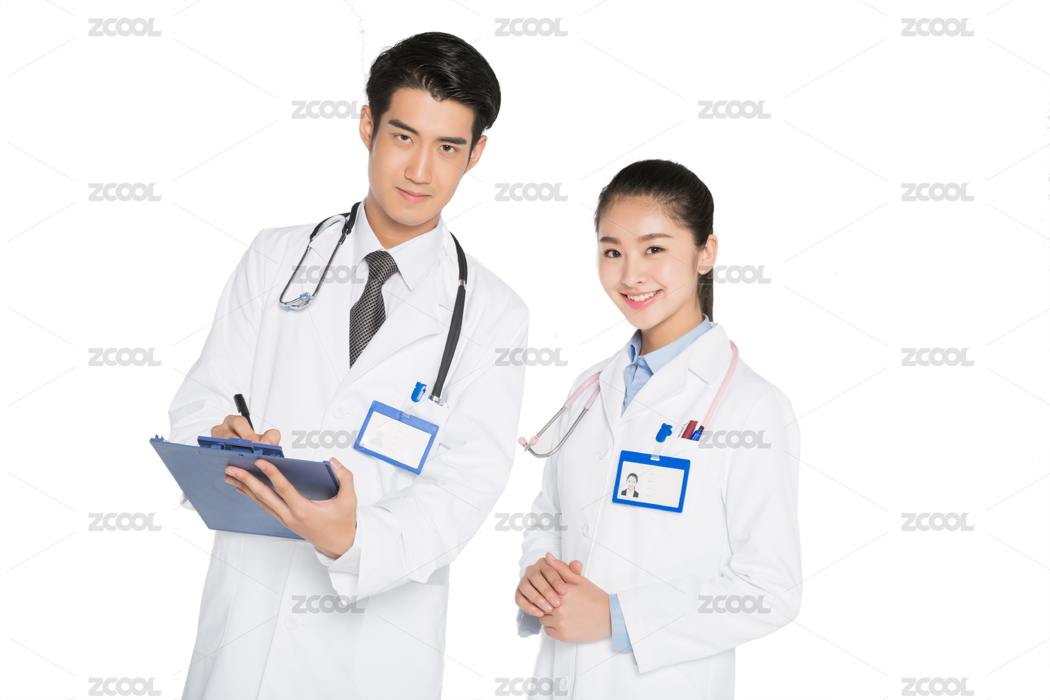 影棚拍摄青年男女医生形象。年轻大夫肖像