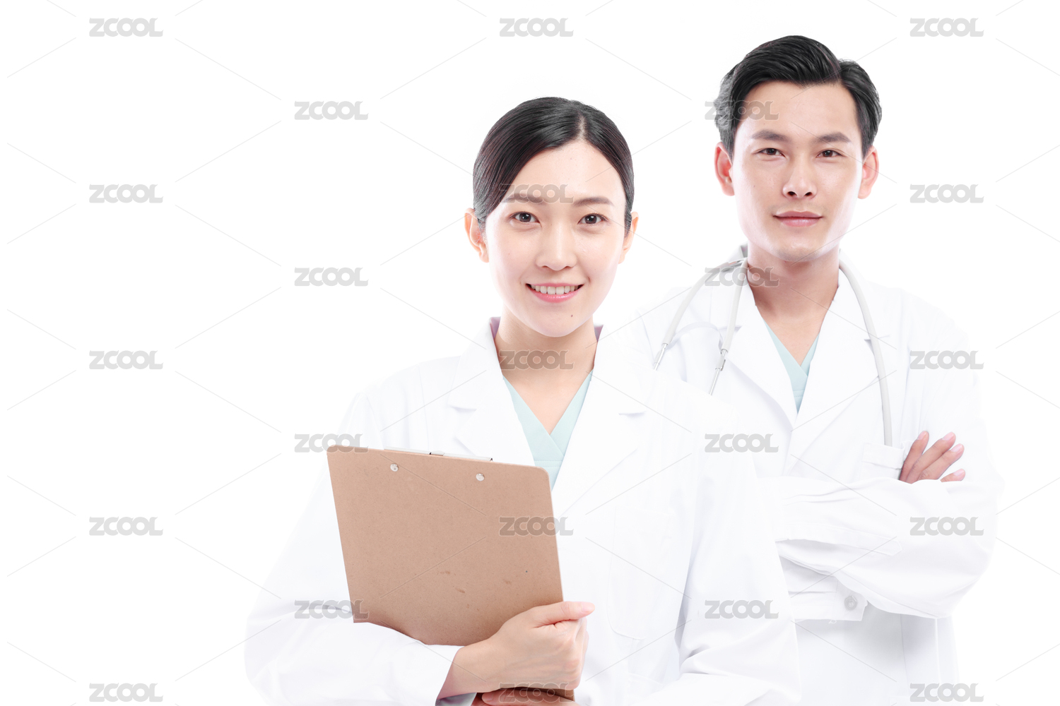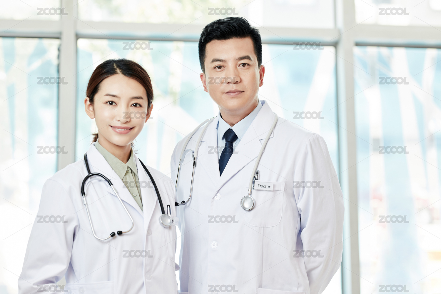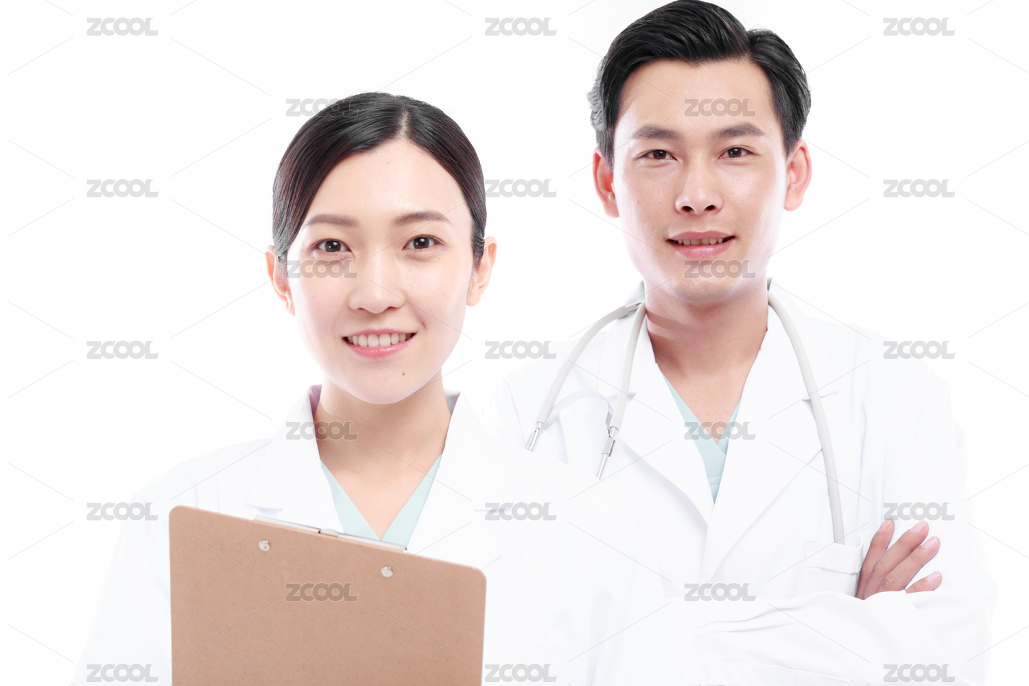 影棚拍摄青年男女医生形象。年轻大夫肖像