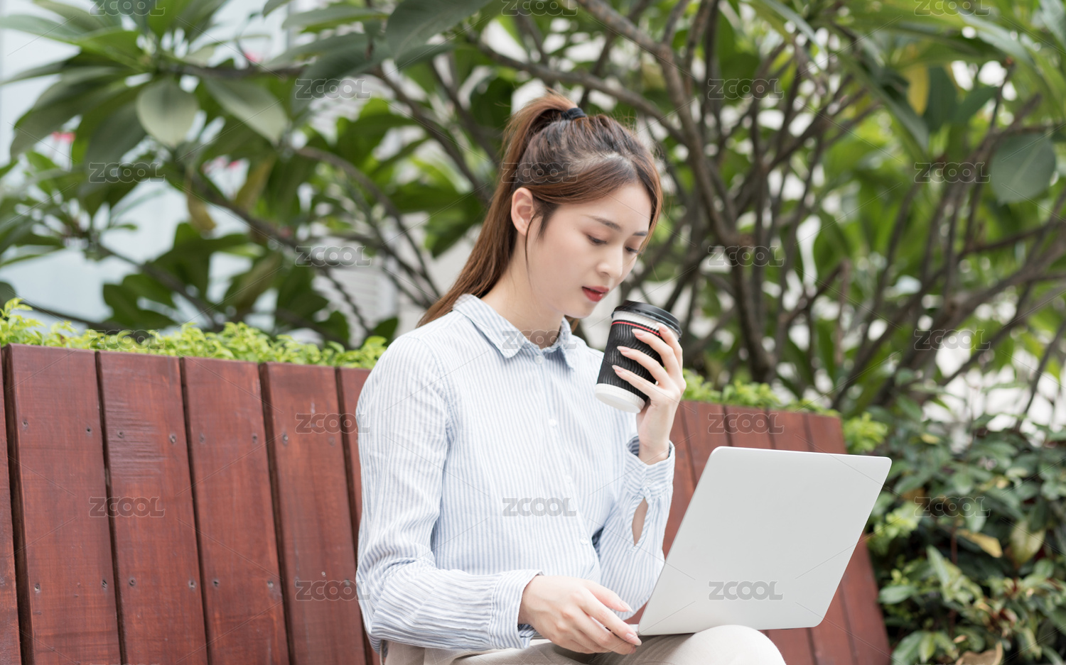 户外办公的商务女士