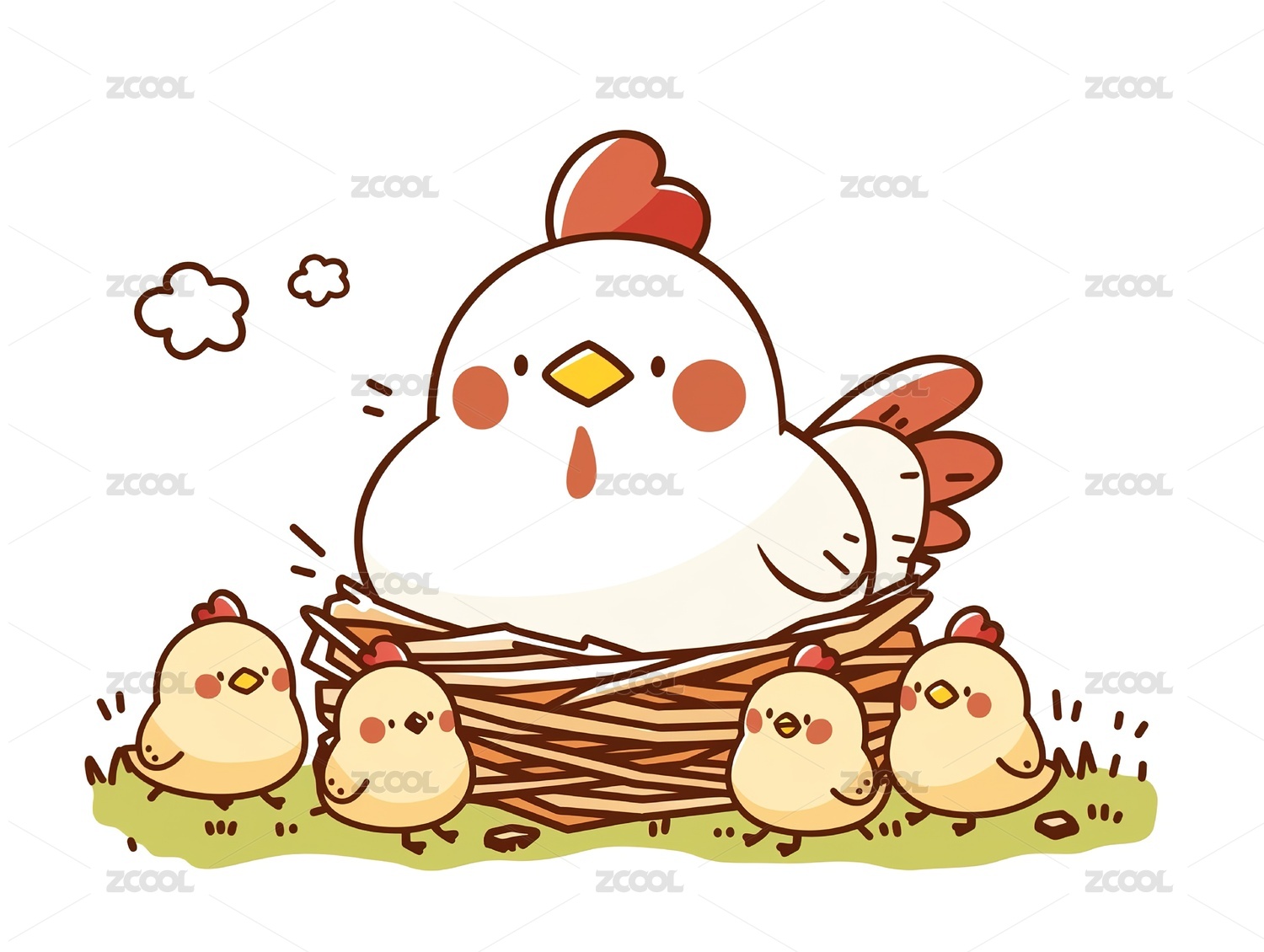 卡通手绘小动物母鸡带小鸡插画