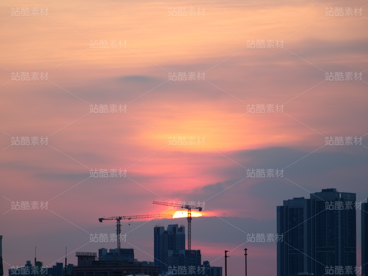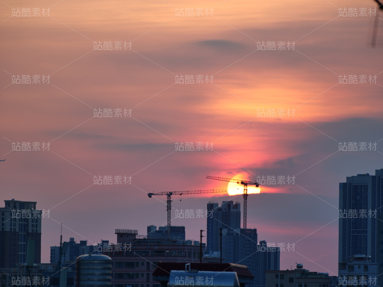 夕阳下正在作业的吊机