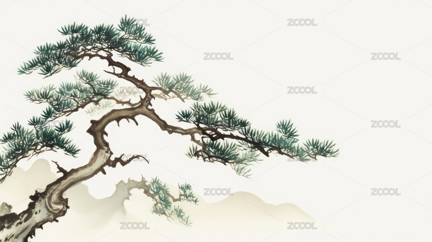 国风水墨风松树 (2